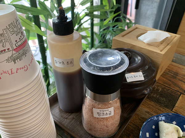소스는 돈가츠소스, 히말라야핑크소금, 돈가츠 특제소스 세가지
