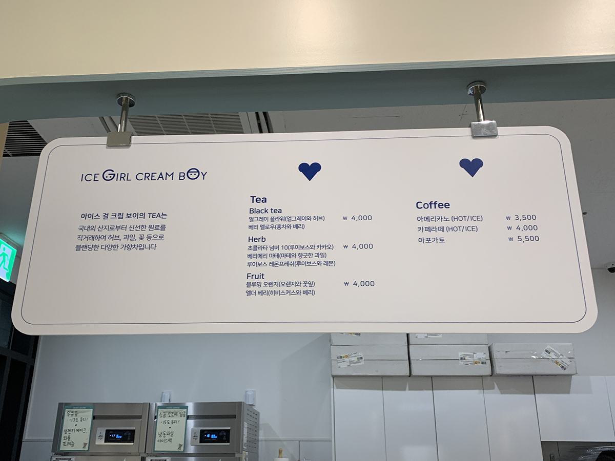 젤라크림 그리고 디저트 메뉴판