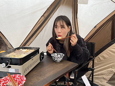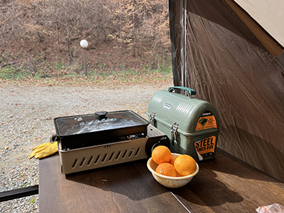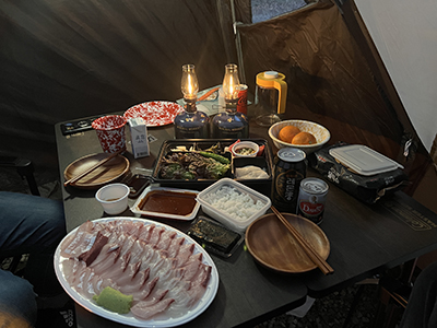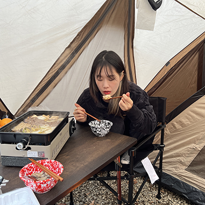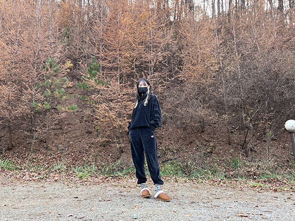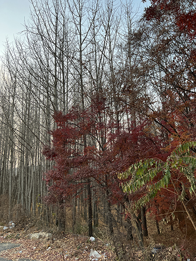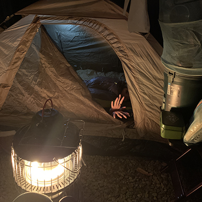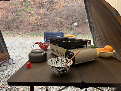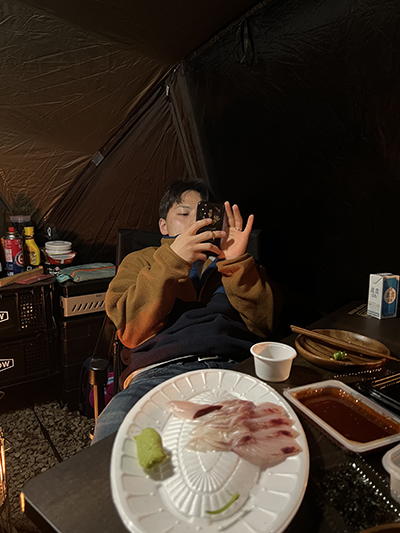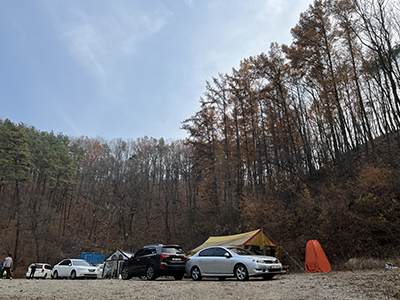 나무 앞에서 찍는 캠핑 인증샷