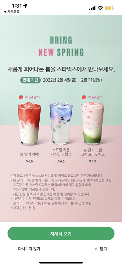 후식으로 예쁜 음료 마시러 나가고 하루 마무리🌙