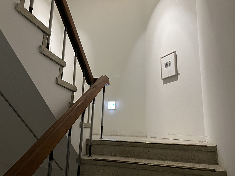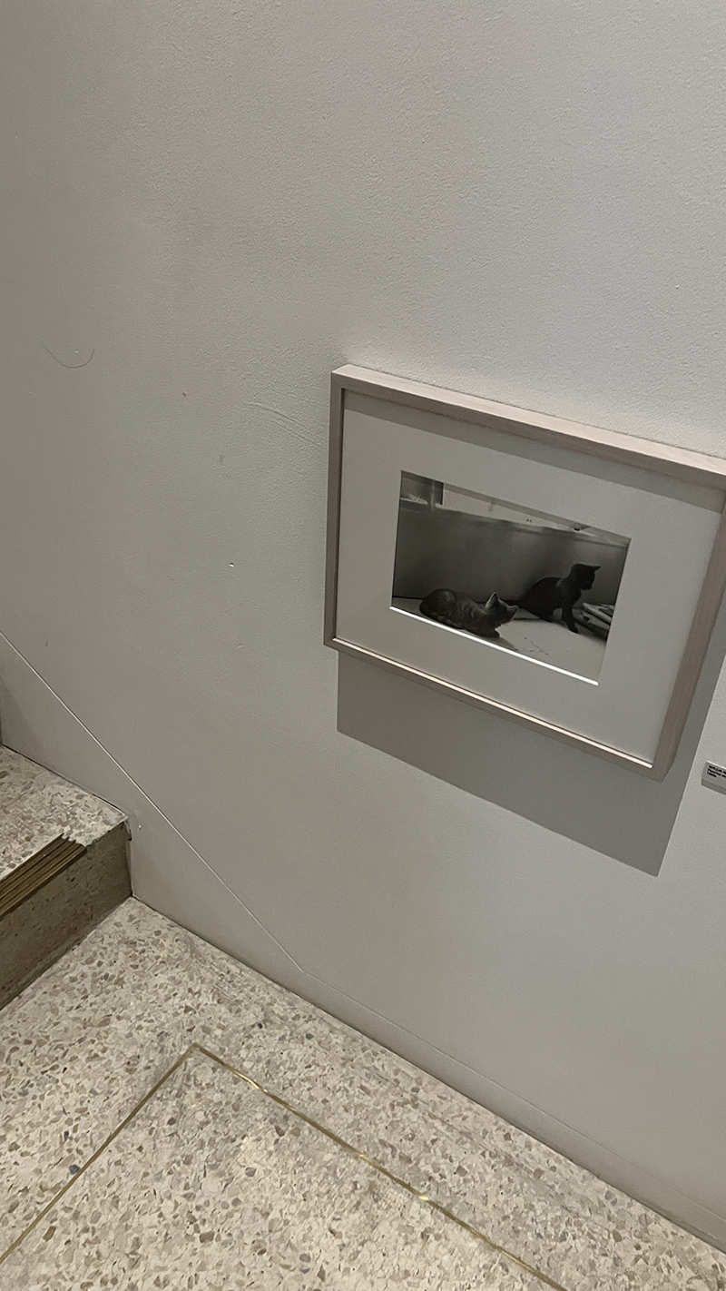 2층으로 올라가는 계단에는 귀여운 고양이 사진이 흑백으로 담겨있다