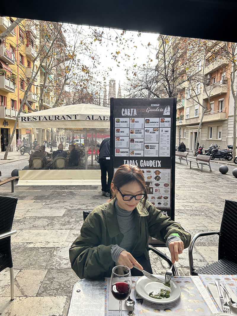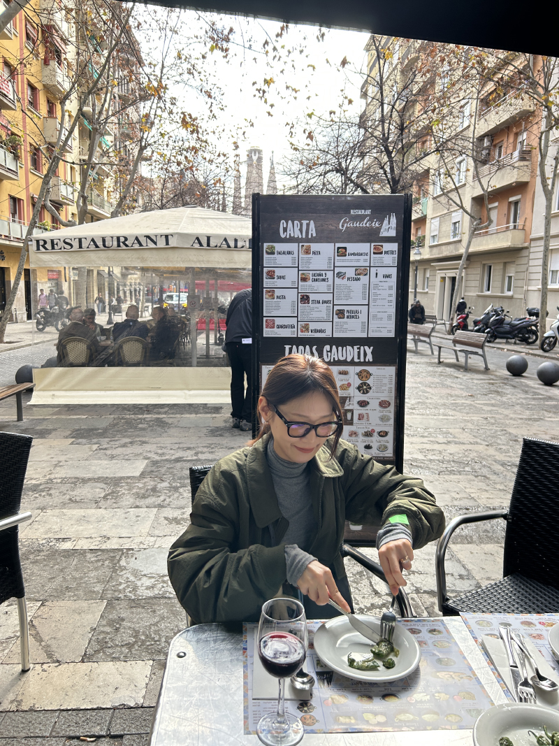 아! 여기 고른 이유는 사그리다 파밀리아 잘 보여서 ! 근데 우리가 앉은 자리는 메뉴판뷰네 ㅋㅋ