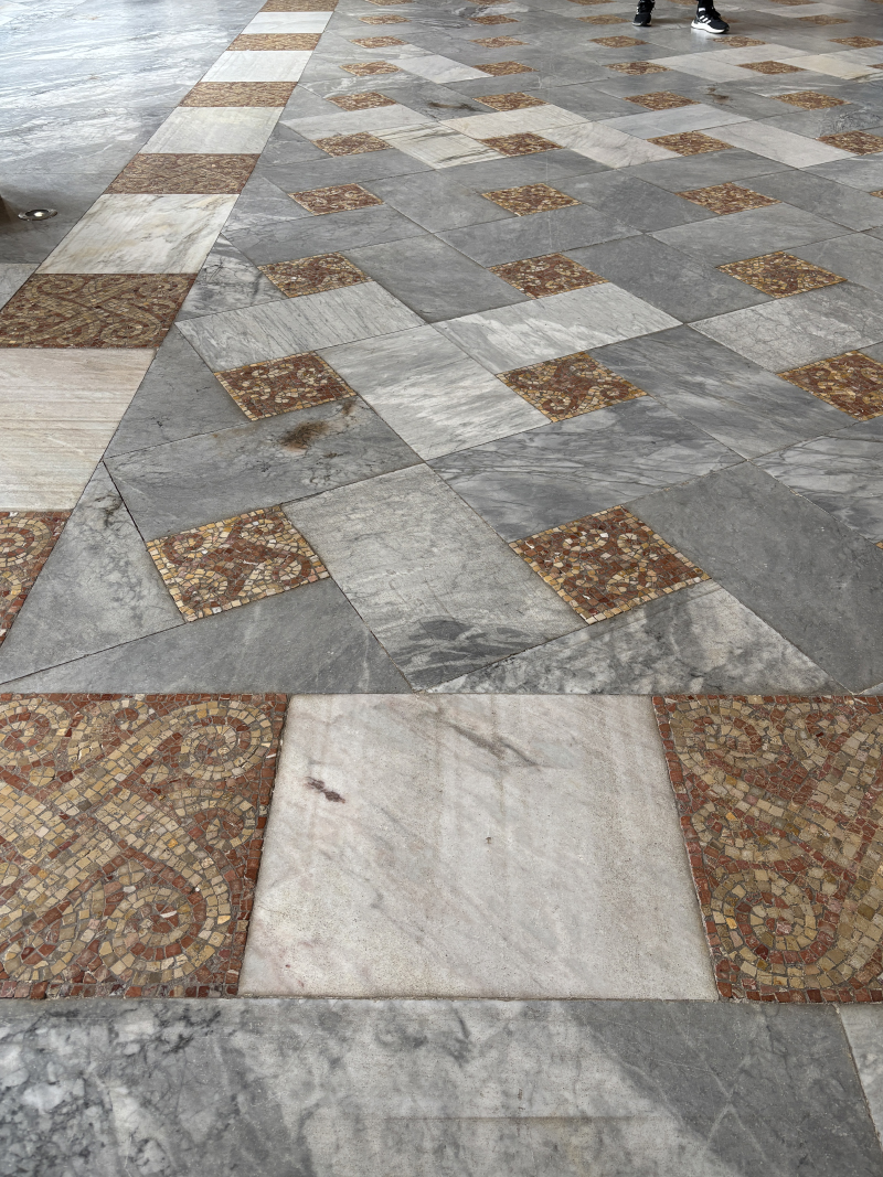 저 위에 이니셜이 여러개 있는데 건물 지을 때 후원한 사람들 이니셜이라고 한다