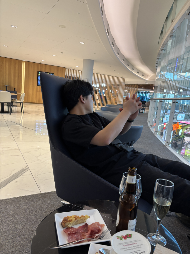 라운지에서 샤워 예약해놓고 요거트 흡입