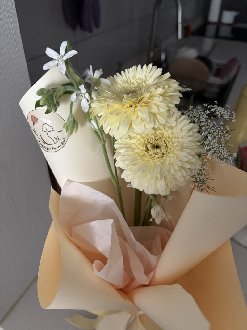어제 받은 꽃 화병에 넣어놓고!
