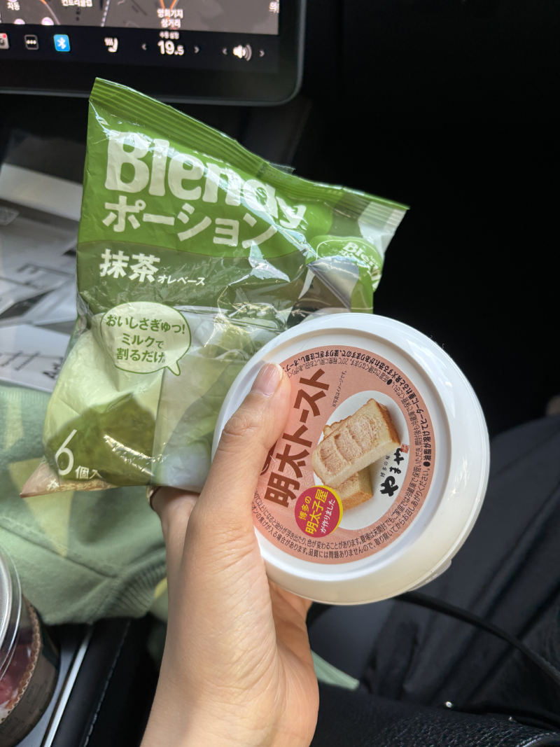 지수랑 잠깐 만났는데 지수가 말차랑 명란스프레드 줬따!