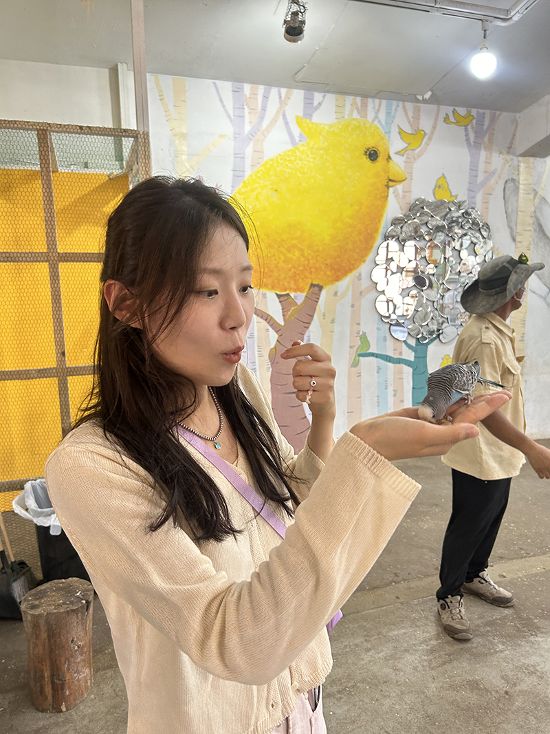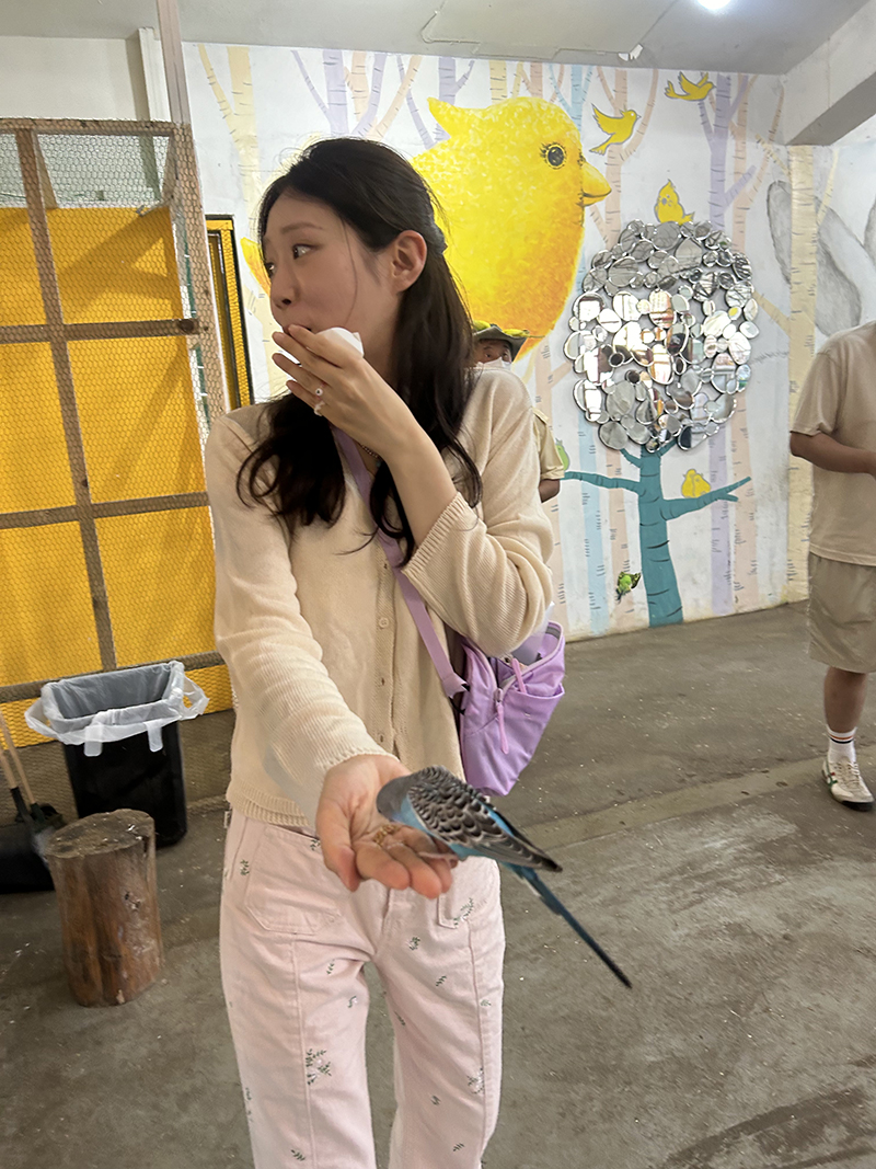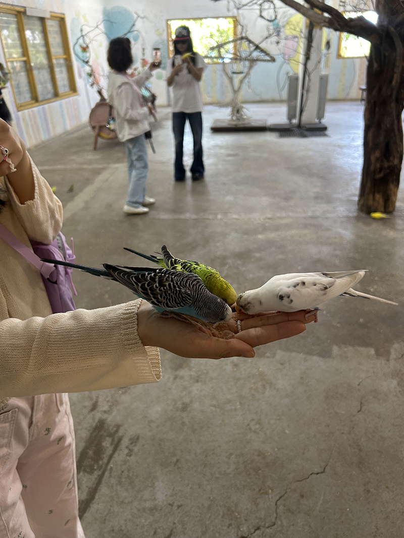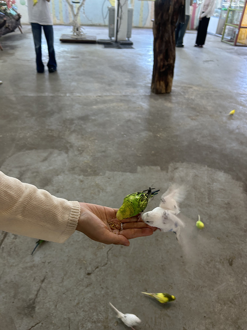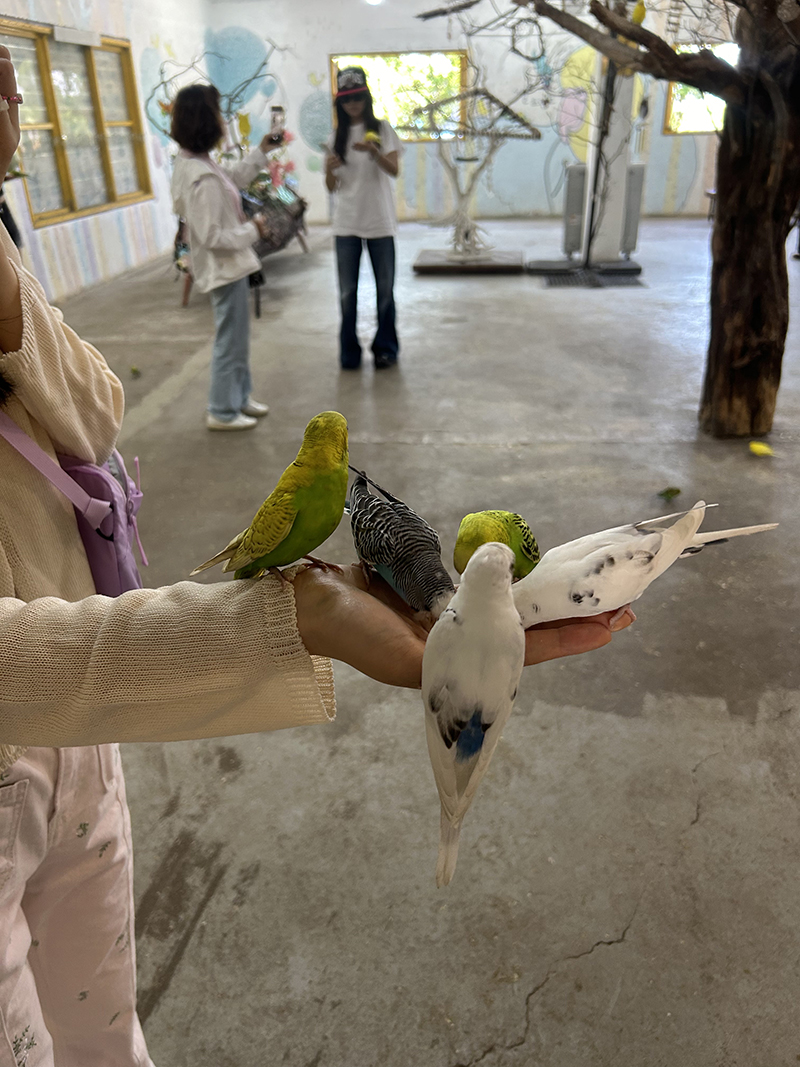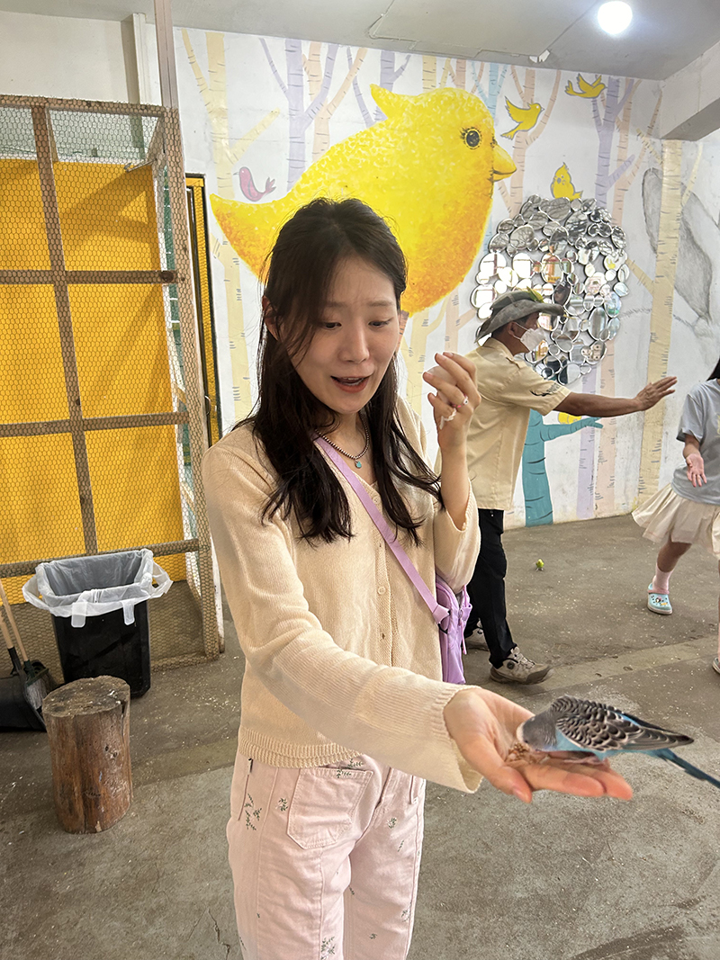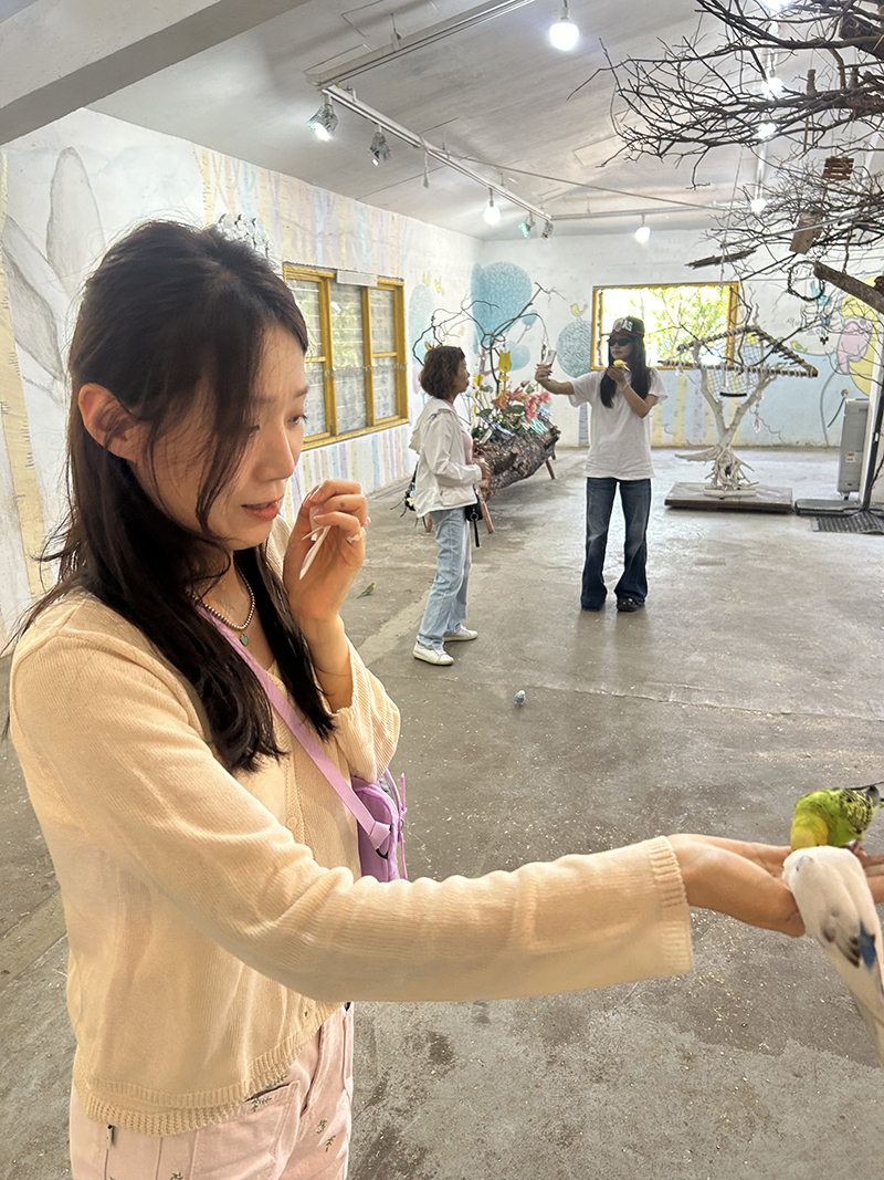 손바닥에 사료 올려서 새들테 주는건데 첨에 너무 무서웠는데