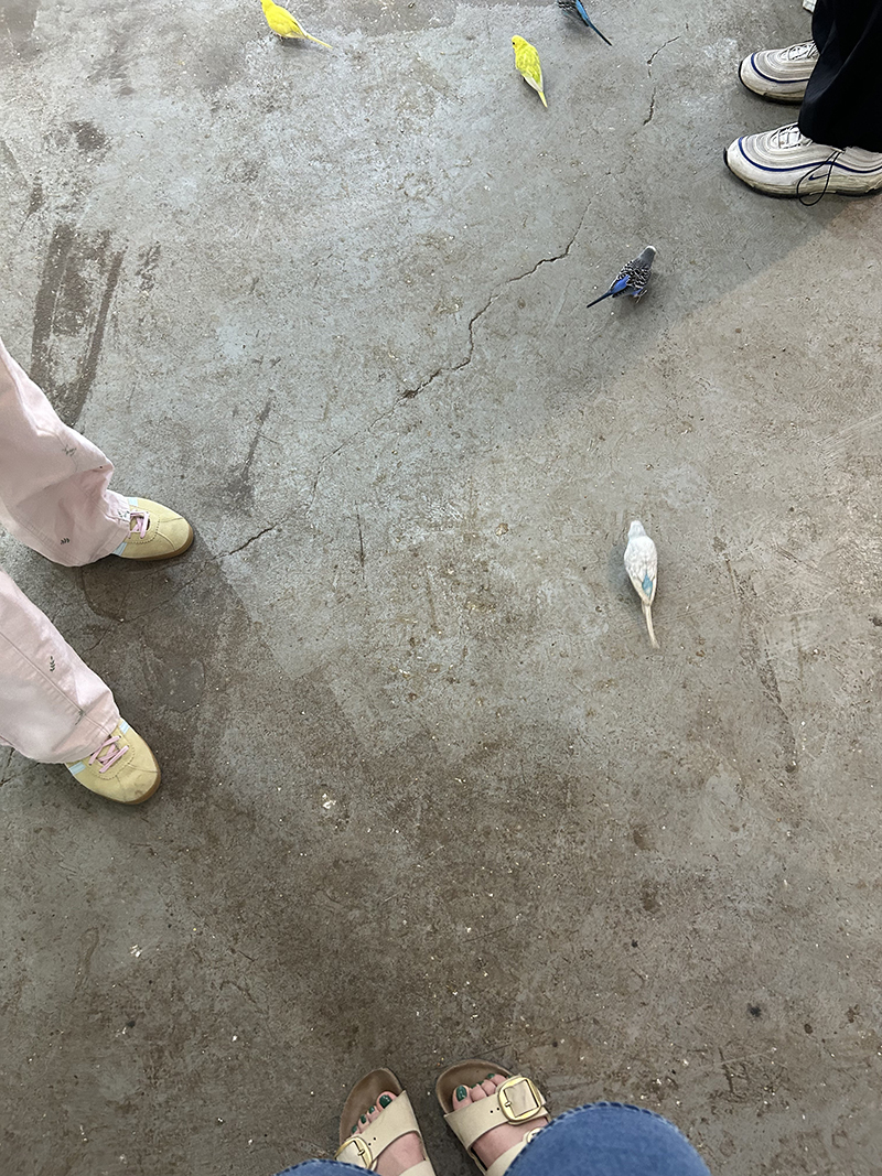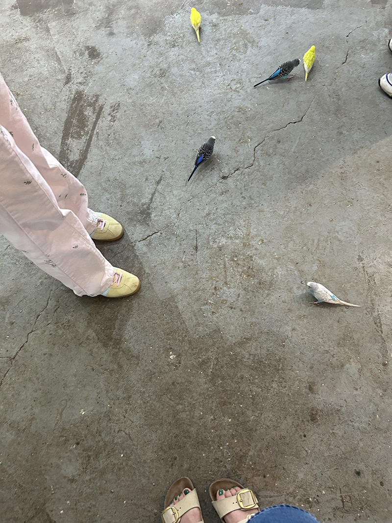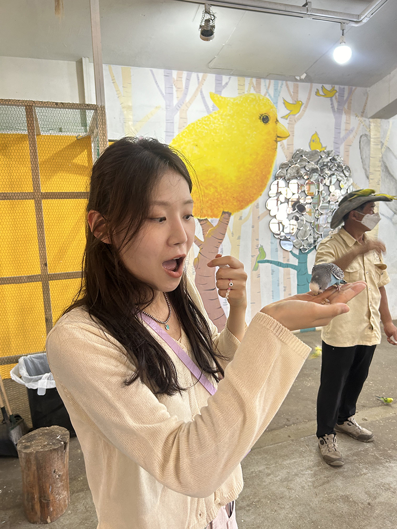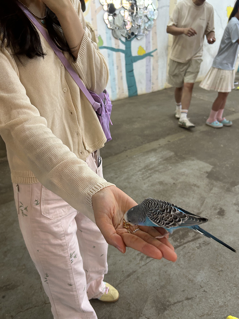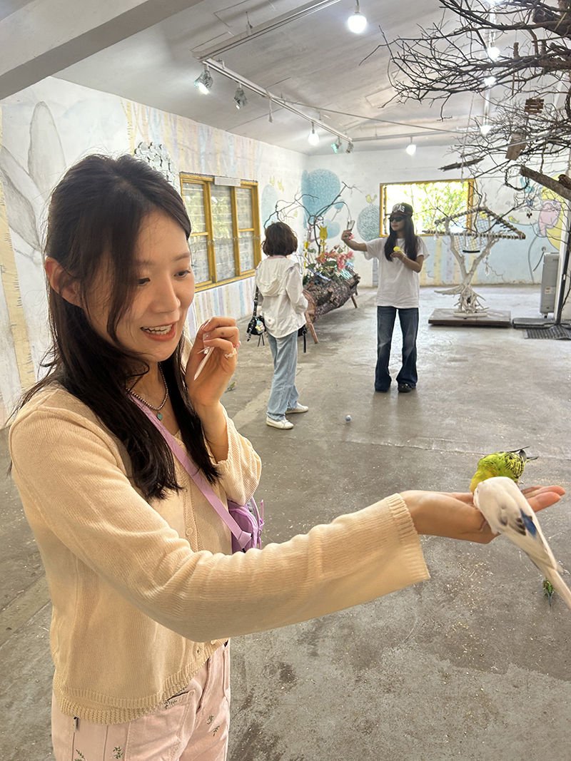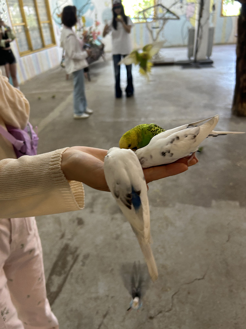 손바닥에 사료 올려서 새들테 주는건데 첨에 너무 무서웠는데