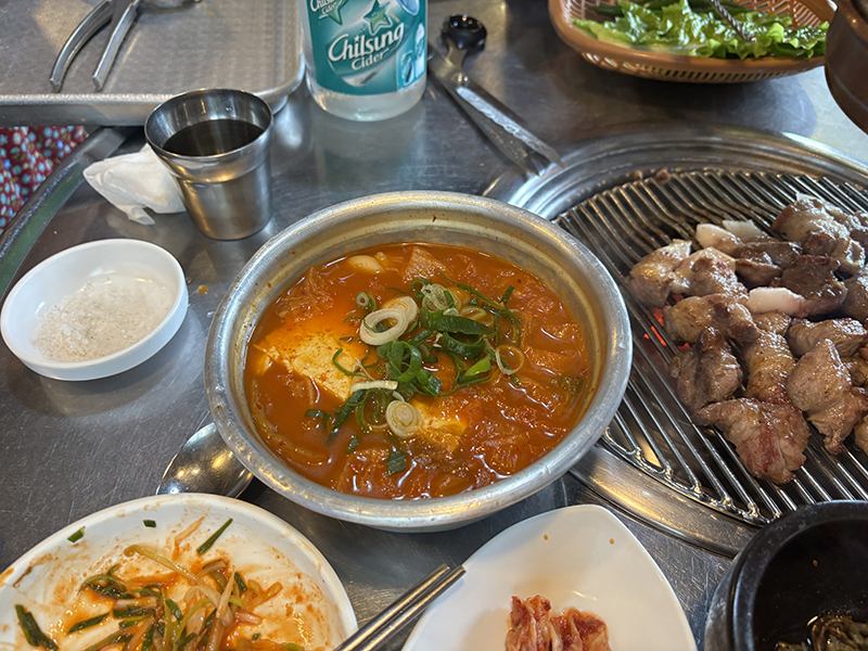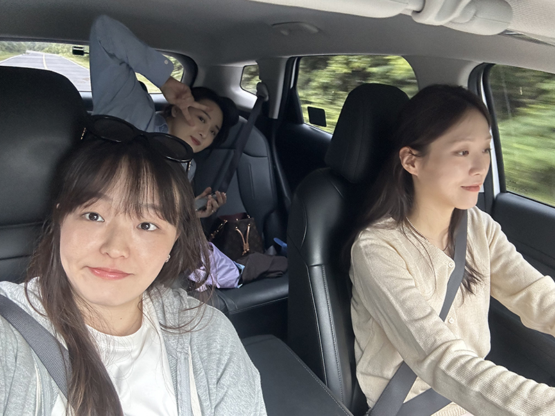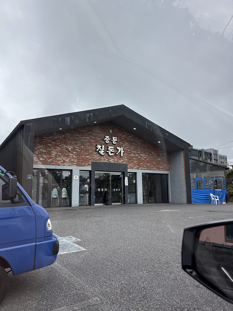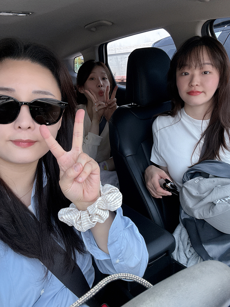 칠돈가 도착했는데 고으니 어제 야근때매 잠 못 자서 뒤에서 자고 있어서 지수랑