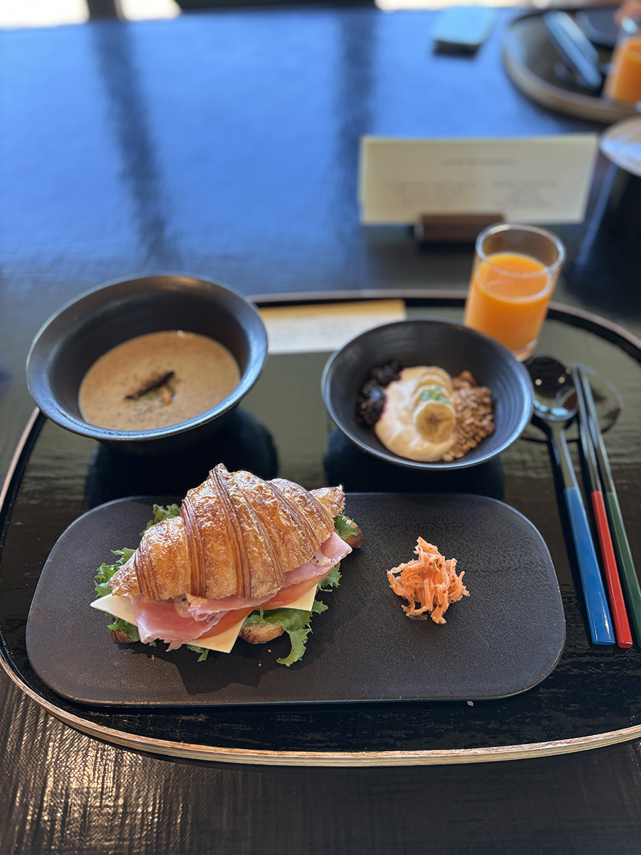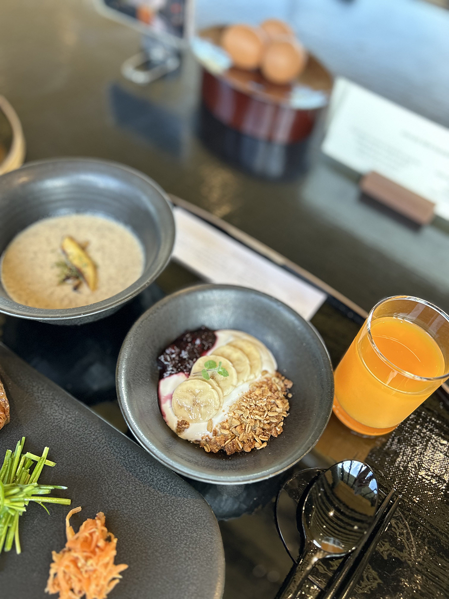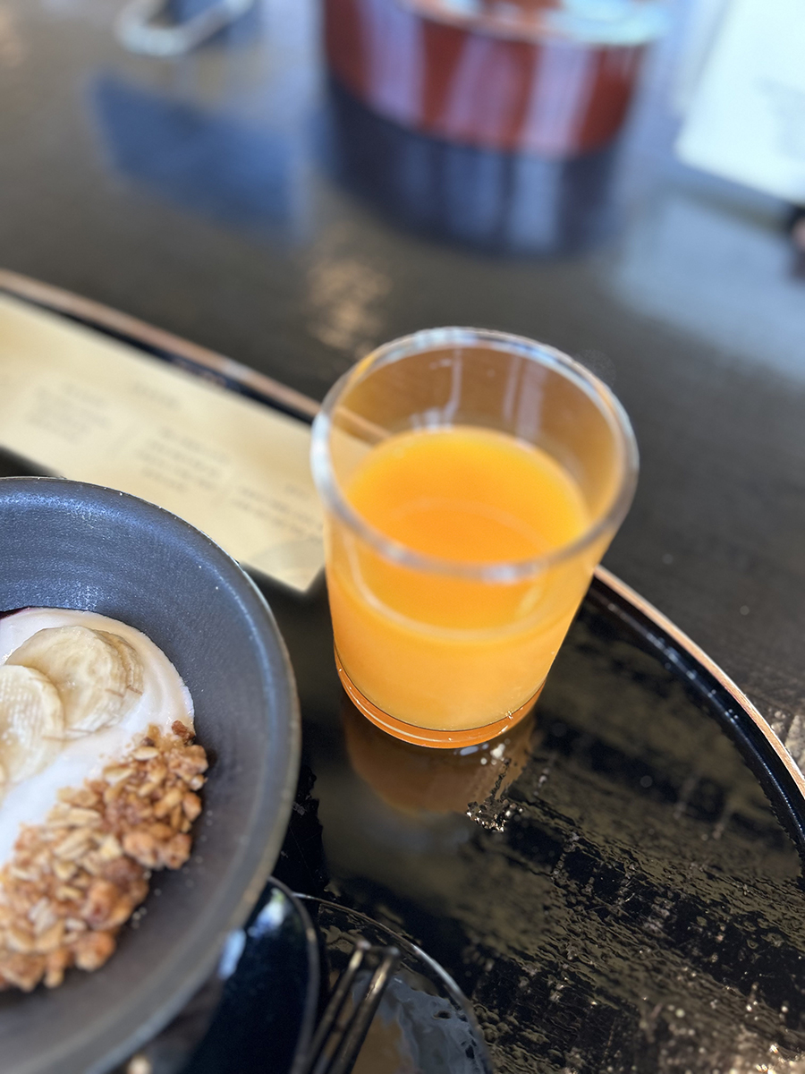 표고버섯 스프, 메밀 그래놀라 요거트, 귤주스가 함께 나온다