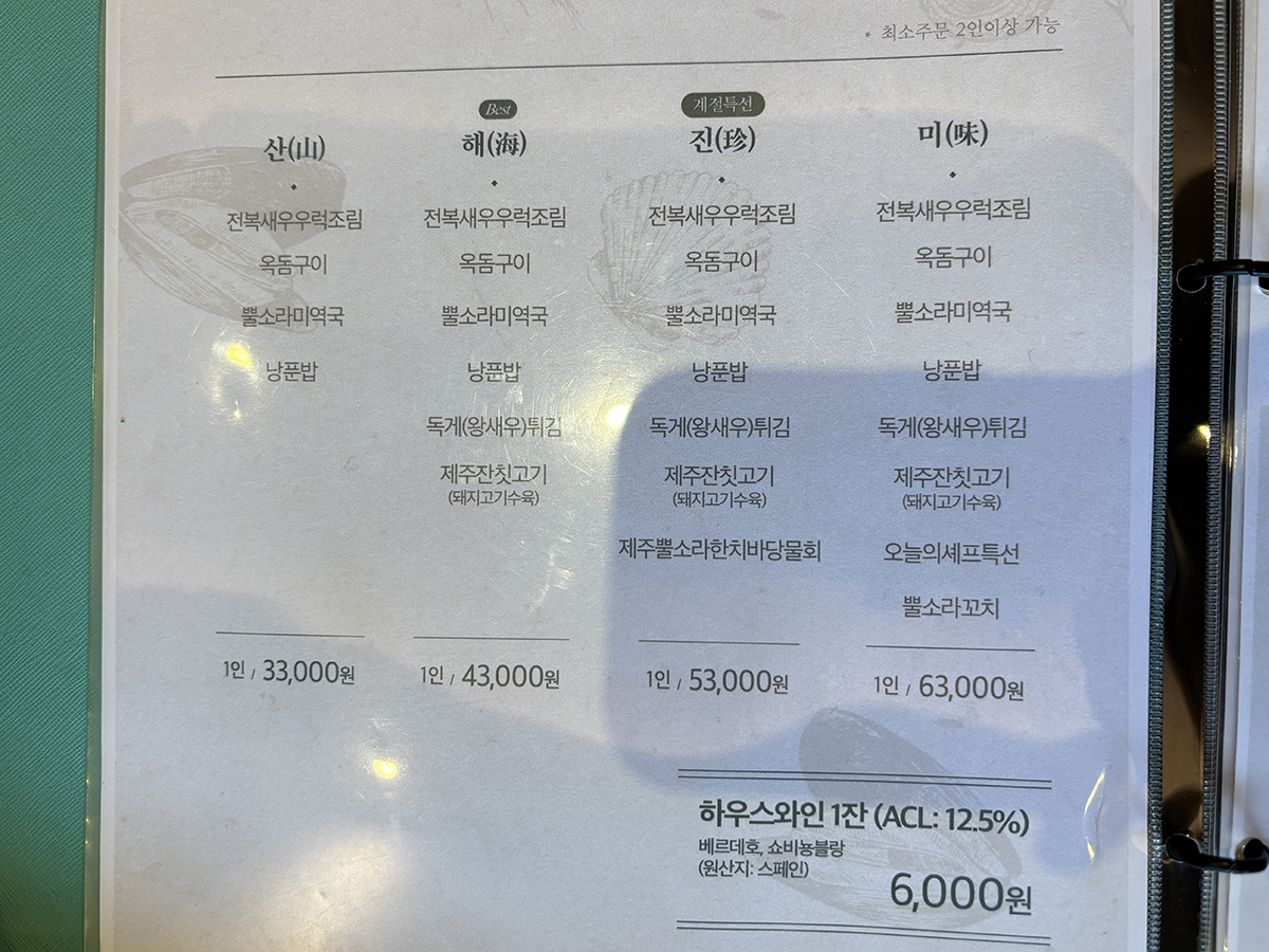 디너 메뉴판! 우리 아마도 진으로 먹었던 거 같고