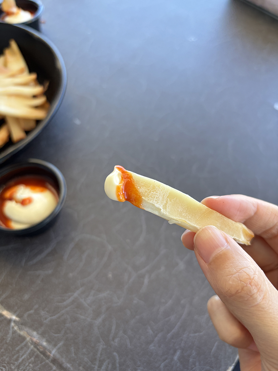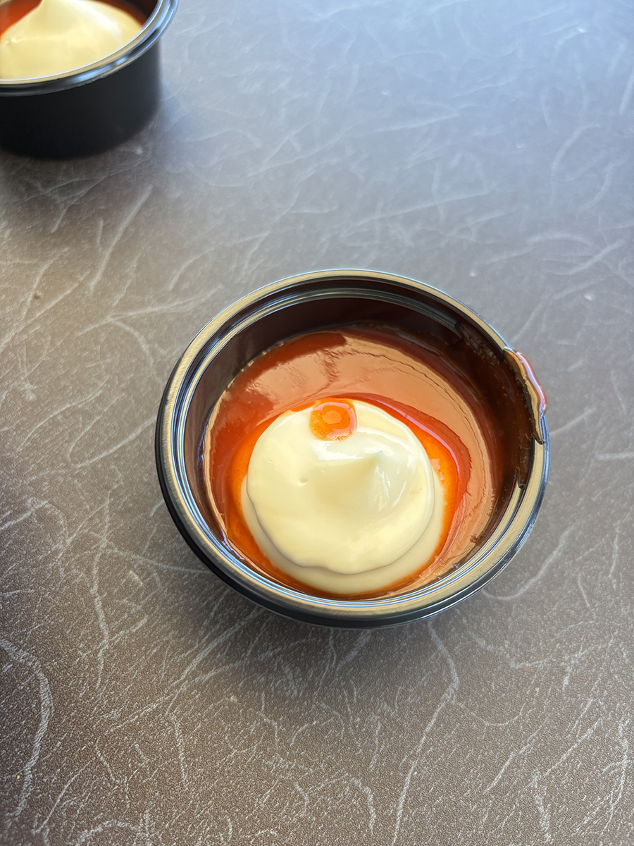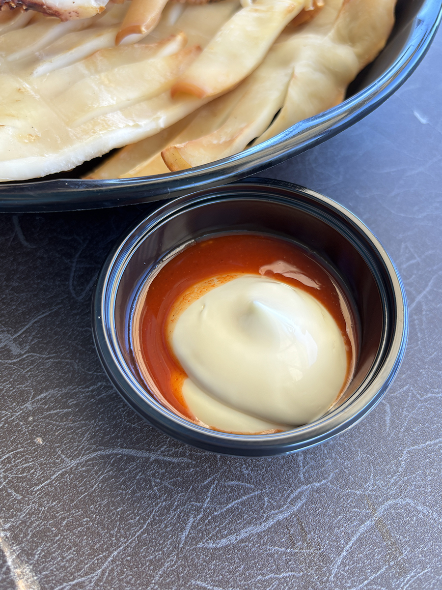 초고추장? 같은 양념 위에 마요네즈가 뿌려진 소스도 함께 나오는데