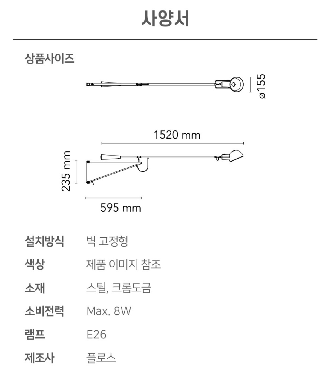 ํ๋ก์ค FLOS ๋ฒฝ์กฐ๋ช 265 ์ค๋ชฐ ๋ธ๋