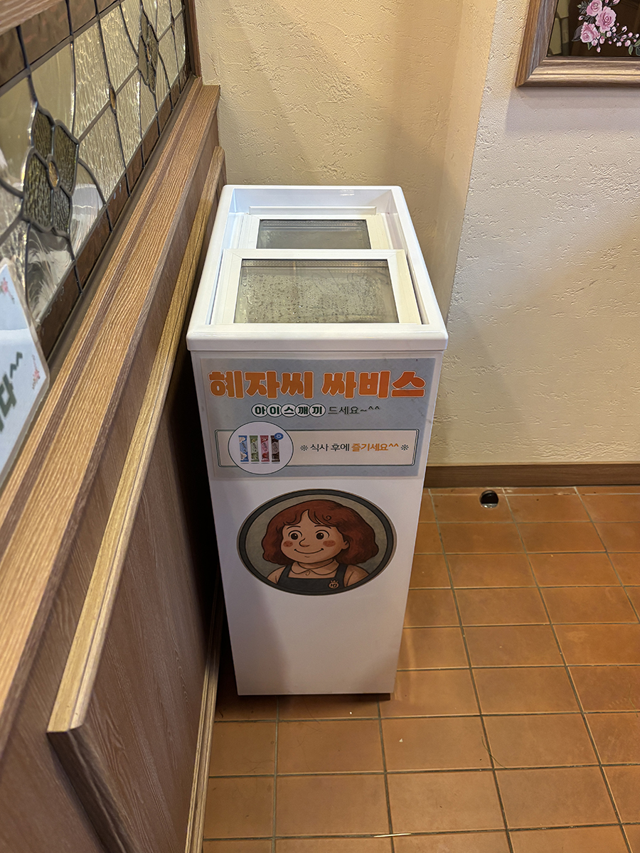 출구 앞에 무료 아이스크림이 있어 매운 입을 잠재워줬다!