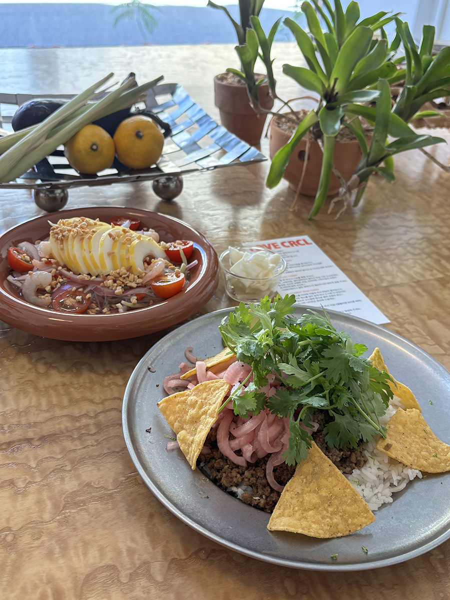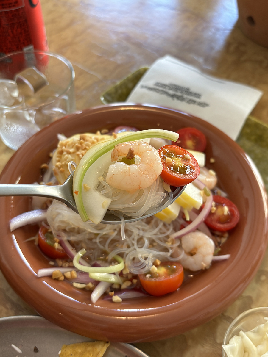 여름이니까 타이드라이커리와 참외가 올려진 타이누들샐러드를 주문하고