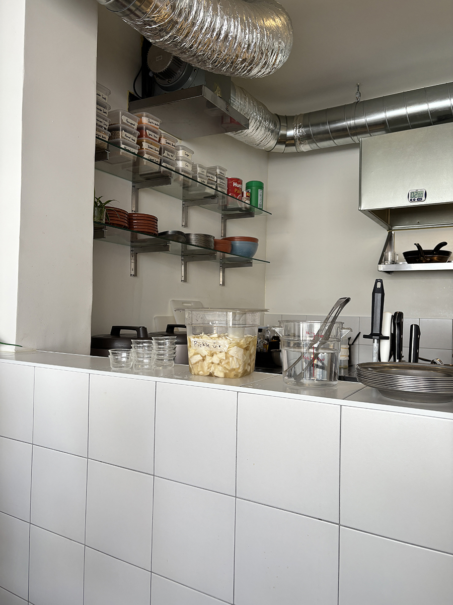 주방쪽에는 피크와 앞접시, 물, 티슈를 셀프로 챙기는 공간이 있었고