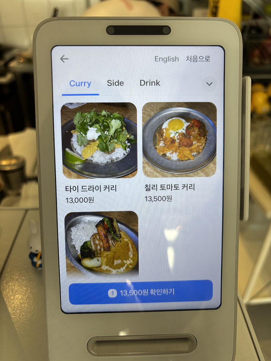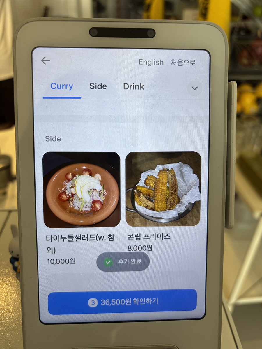 거기에 함께 이 메뉴판과 주문/결제 동시에 가능한 기기가 있었음!