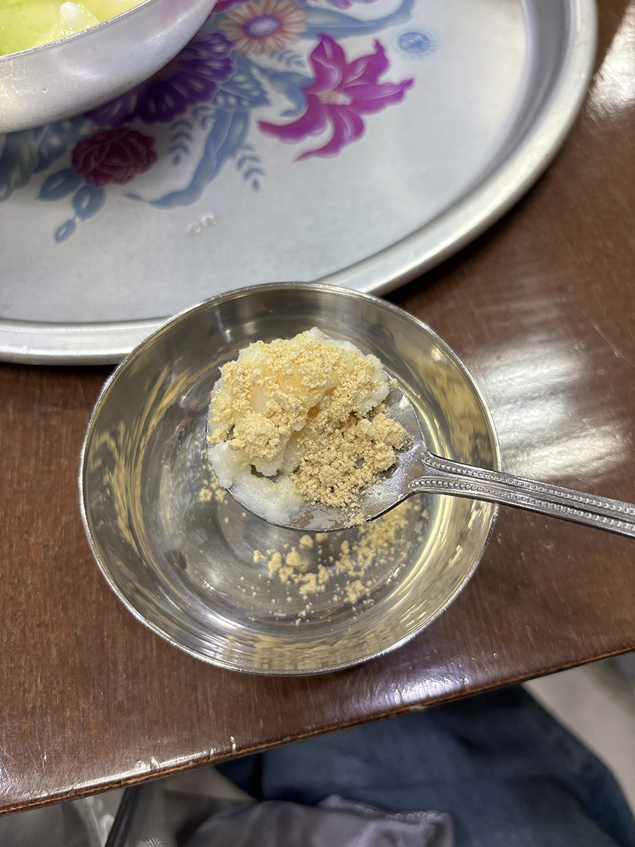 우유 빙수만 남으면 콩가루 뿌려 먹으라고! 콩가루도 고소하고 깔끔해 맛있게 먹고 나왔다