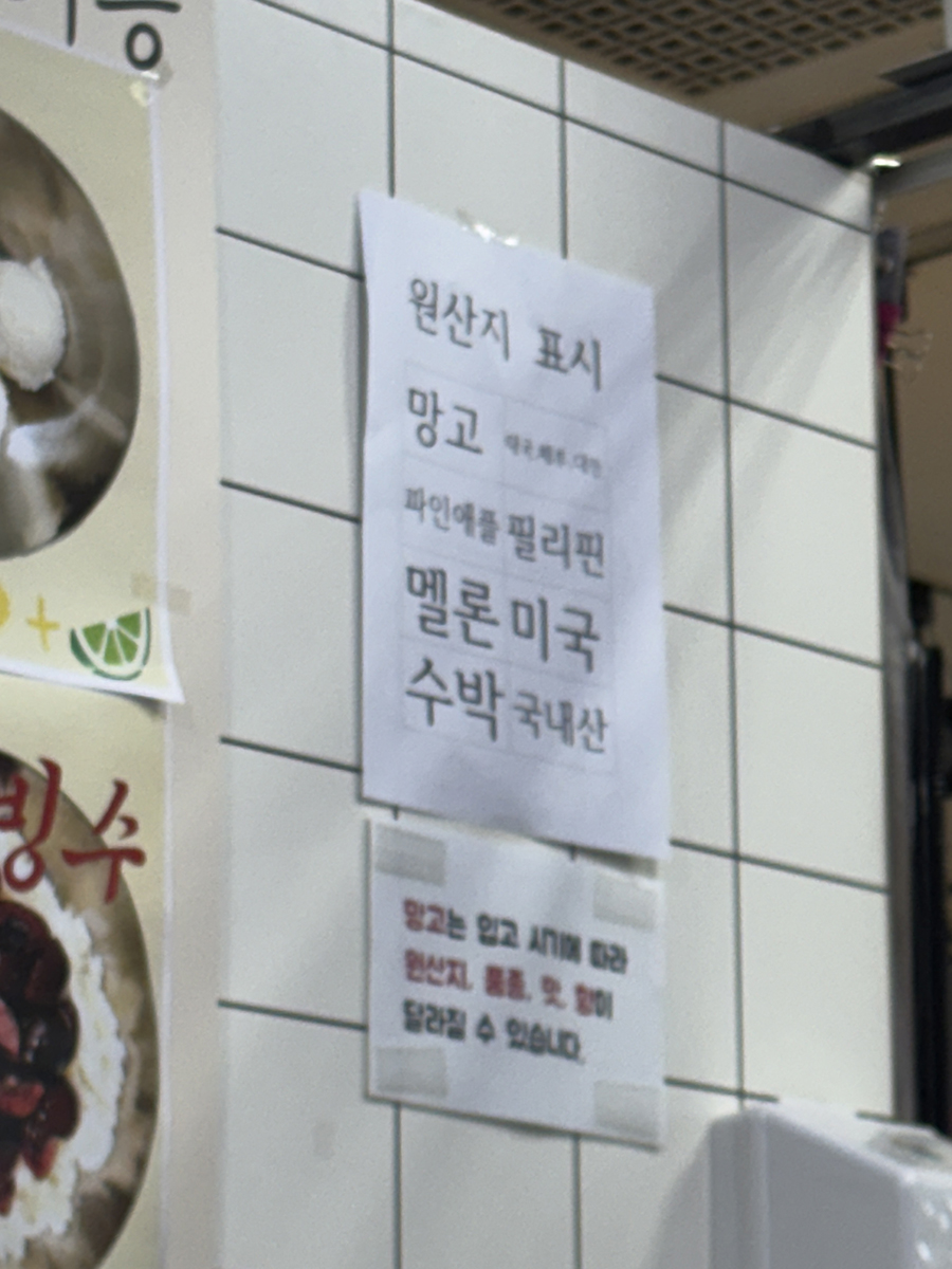 여튼 우리도 단무지빙수를 먹고 싶어 왔으나 철이 아니라 허니듀빙수만 있다고 하여