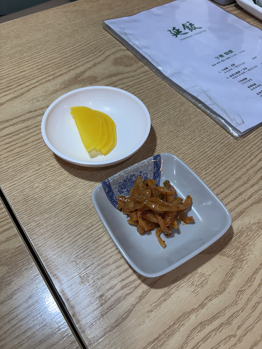 기본찬으로는 단무지와 짜사이~