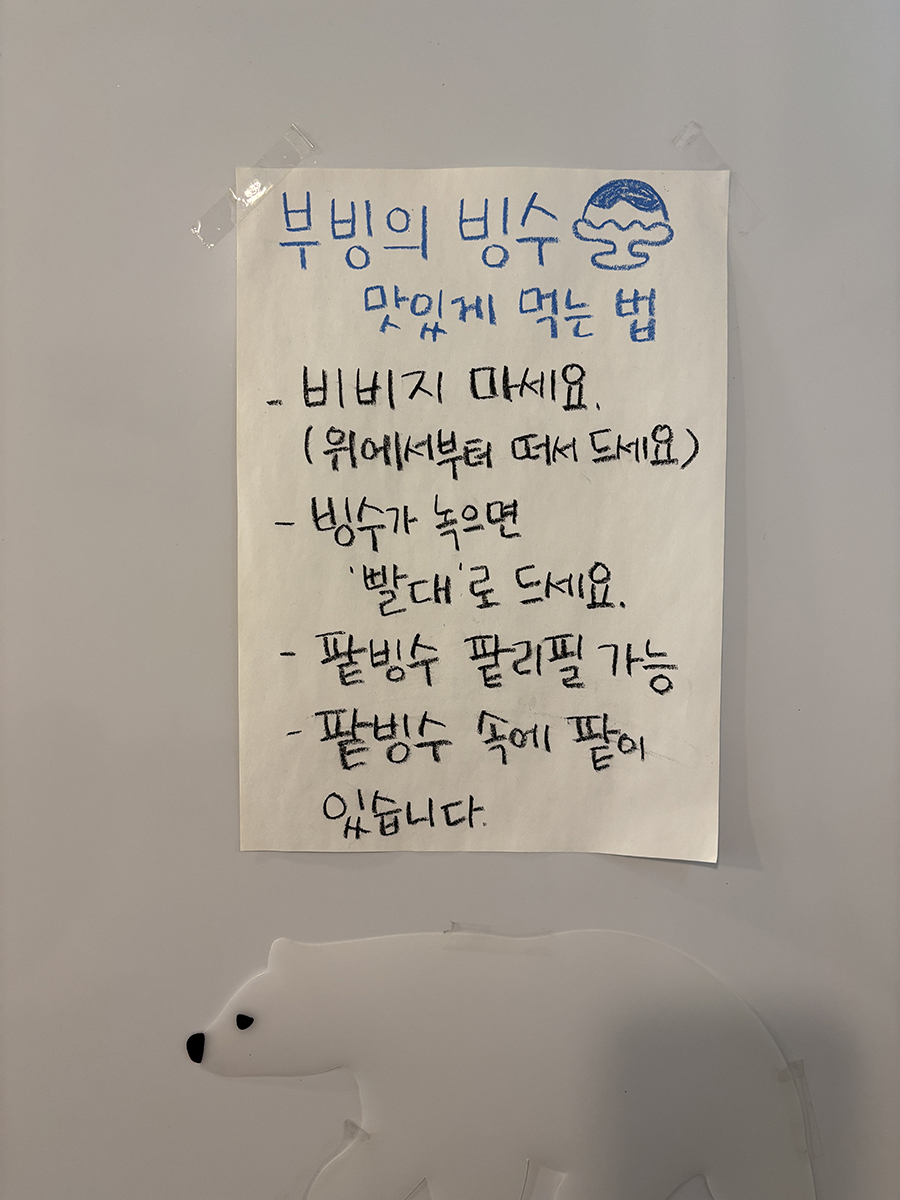 비비지 말고 위에서부터 떠 먹다가 빙수가 녹으면 빨대로 먹으라고!