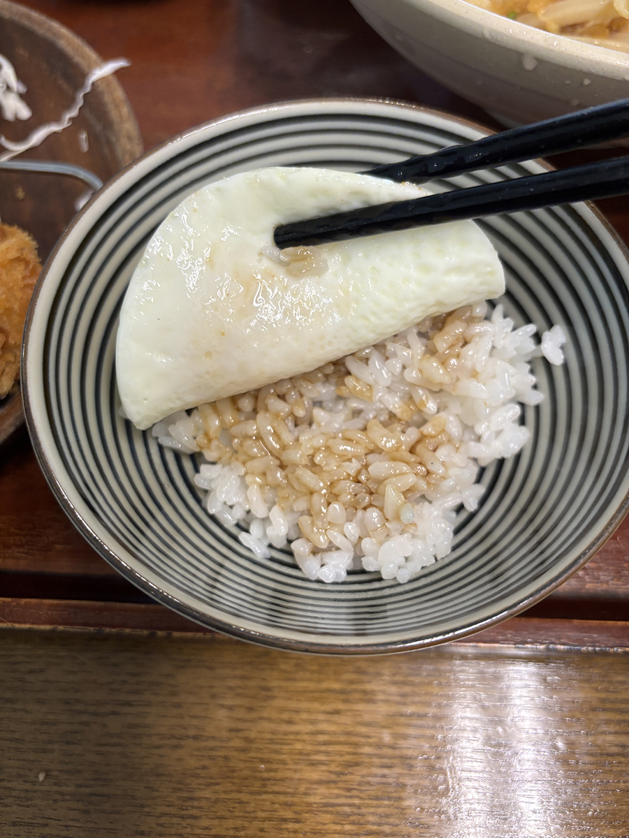 계란밥 안에는 간장 소스도 뿌려져 있었다 잘 비벼 돈가스랑 같이 먹음 딱!