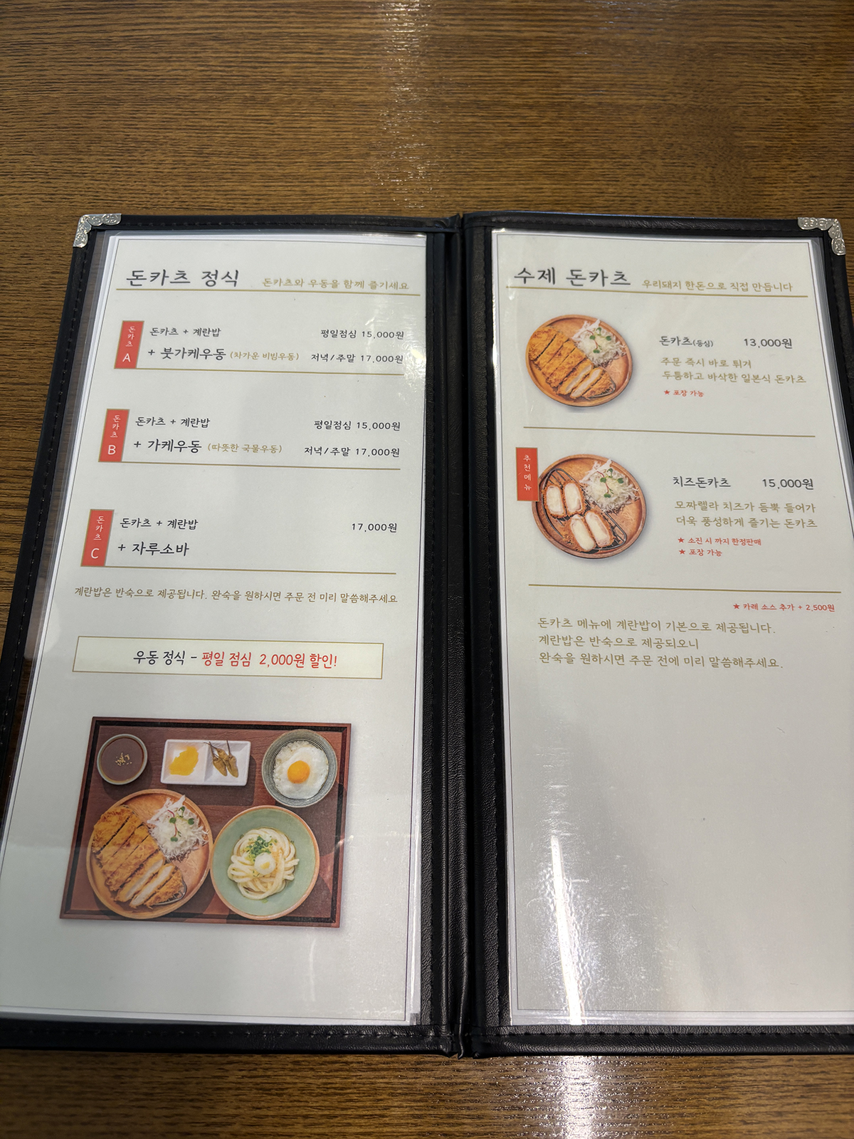 메뉴판 사진! 나는 돈카츠 정식에서 붓카케 우동을 선택