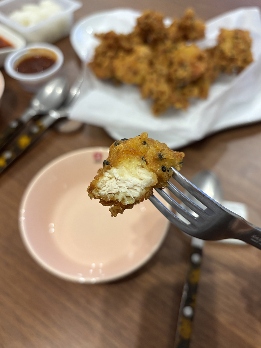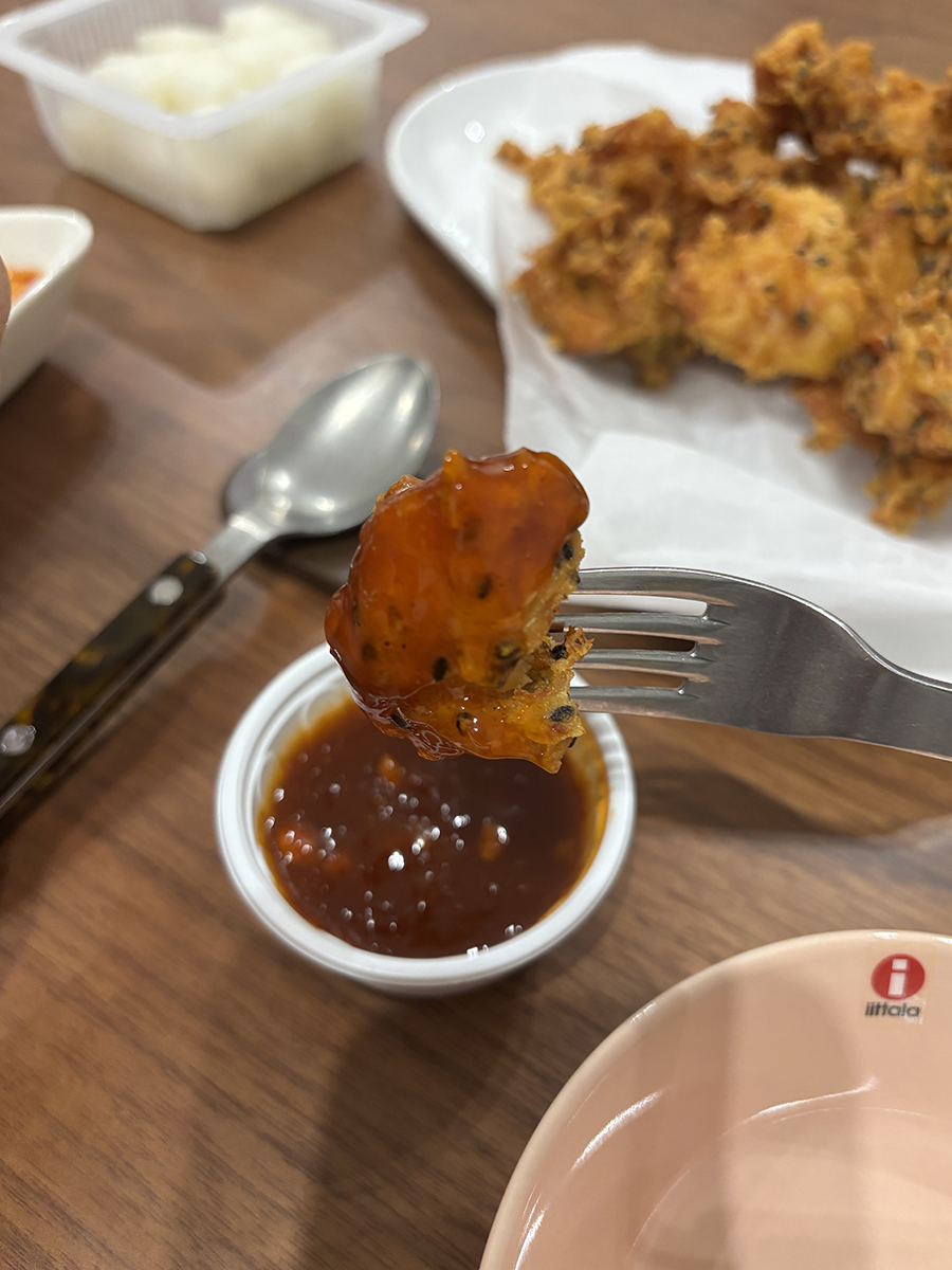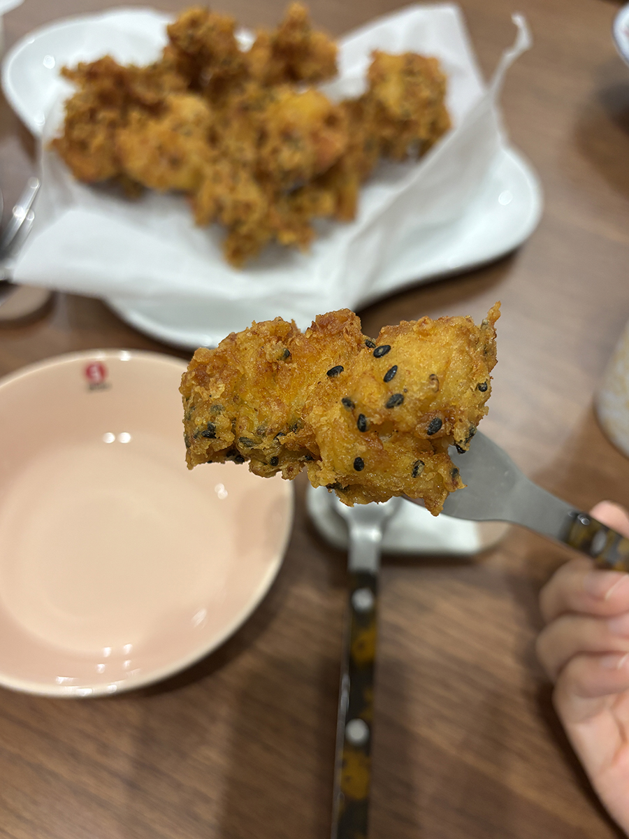진한 카레향이 나는 튀김옷에 깨가 박힌 게 특이했다!