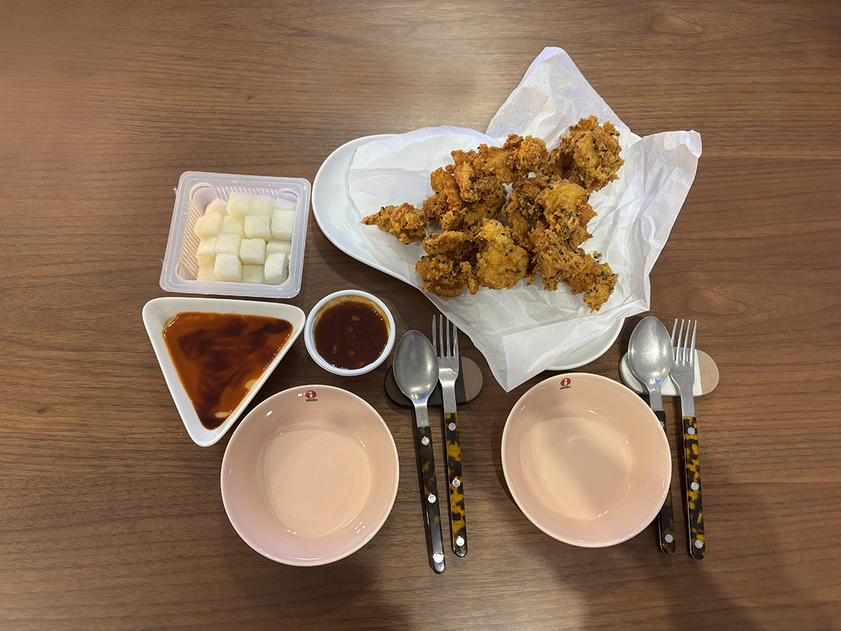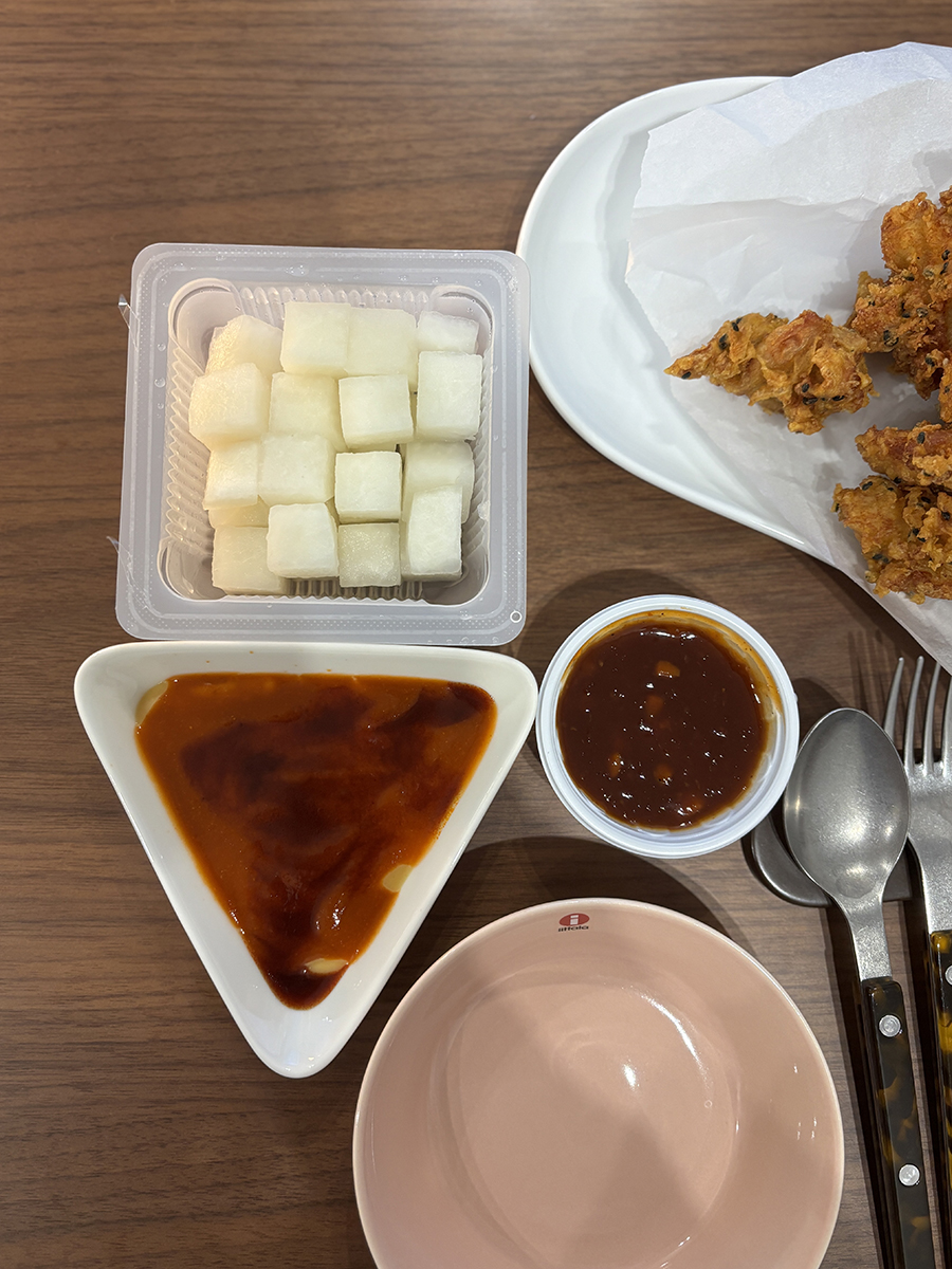 치킨무와 양념 하나가 나오고 하나는 우리가 만든 거 !