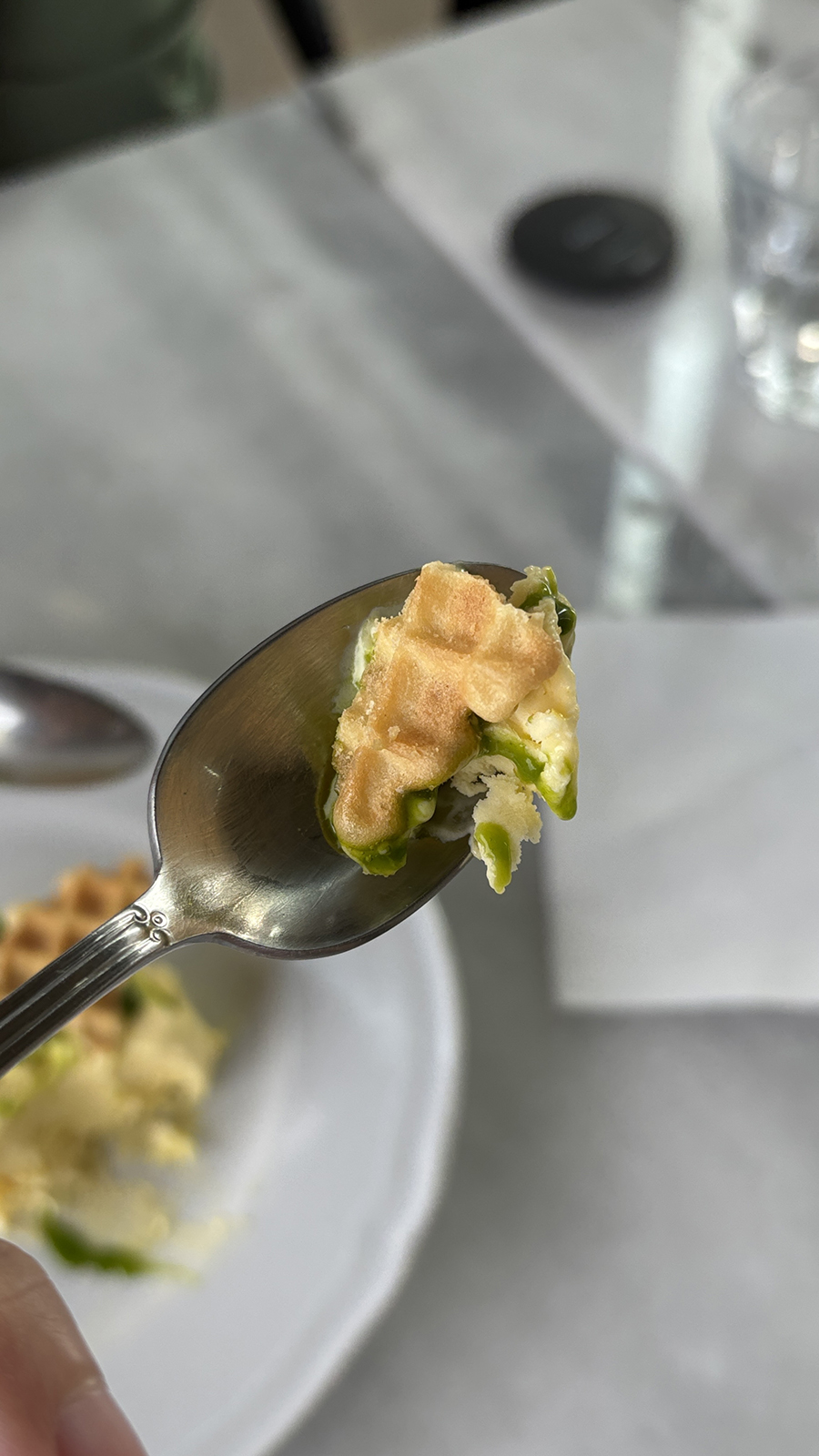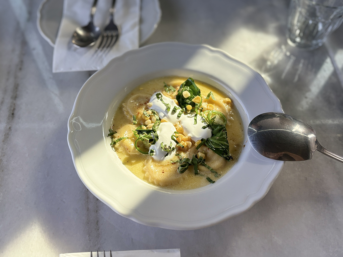크리미한 소스에는 옥수수 맛이 났고 상콤한 오이고추, 바질과는