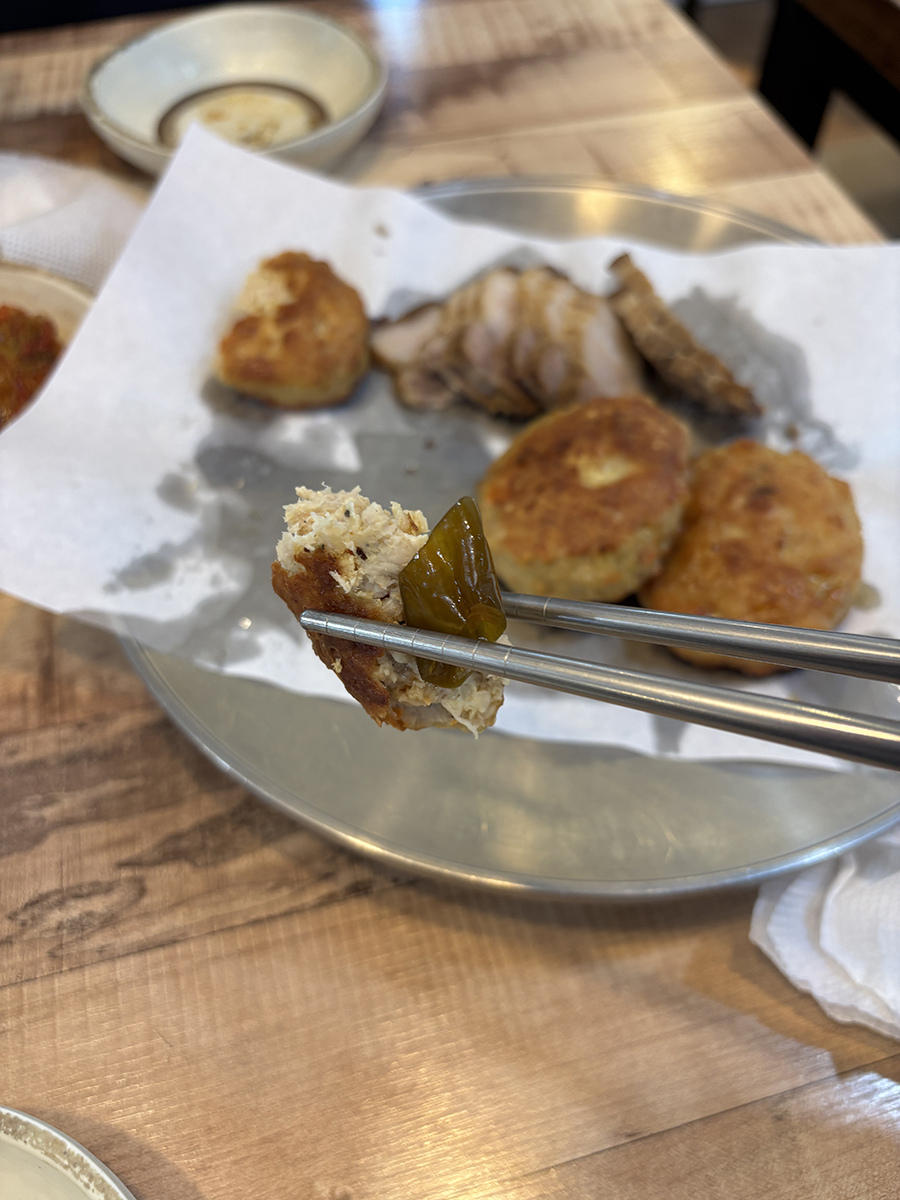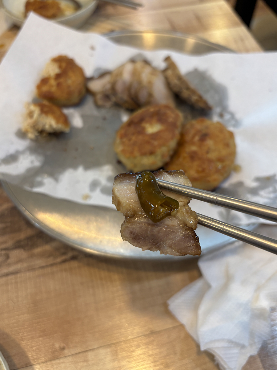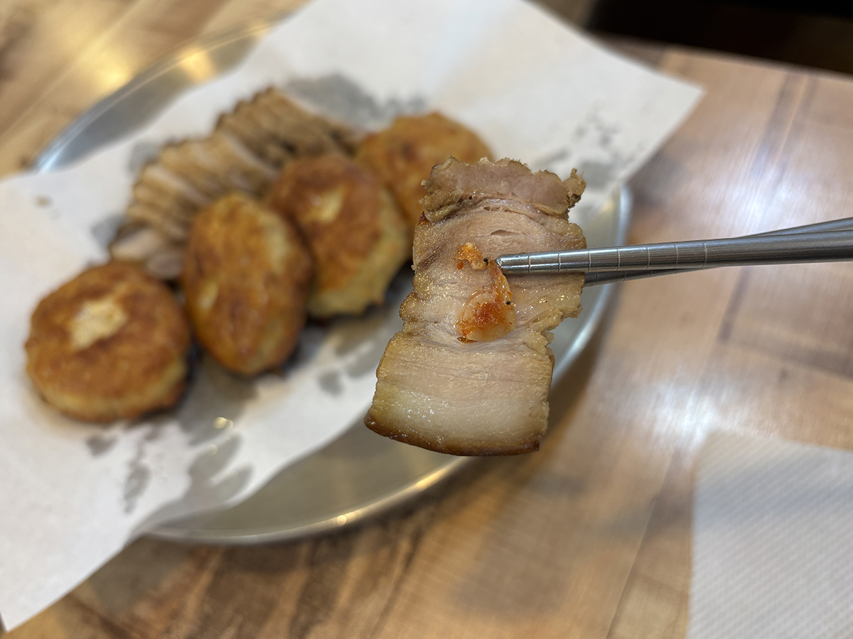 편육은 삶은 다음에 겉을 바삭하게 기름에 한 번 더 구워서 나오는데 이게 참 특이해!
