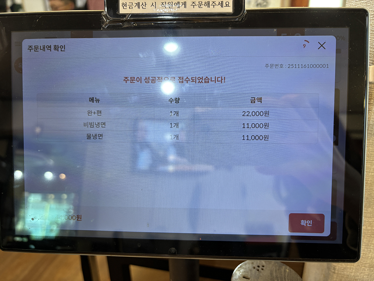 테이블마다 태블릿이 있어 주문과 결제를 바로 할 수 있었다