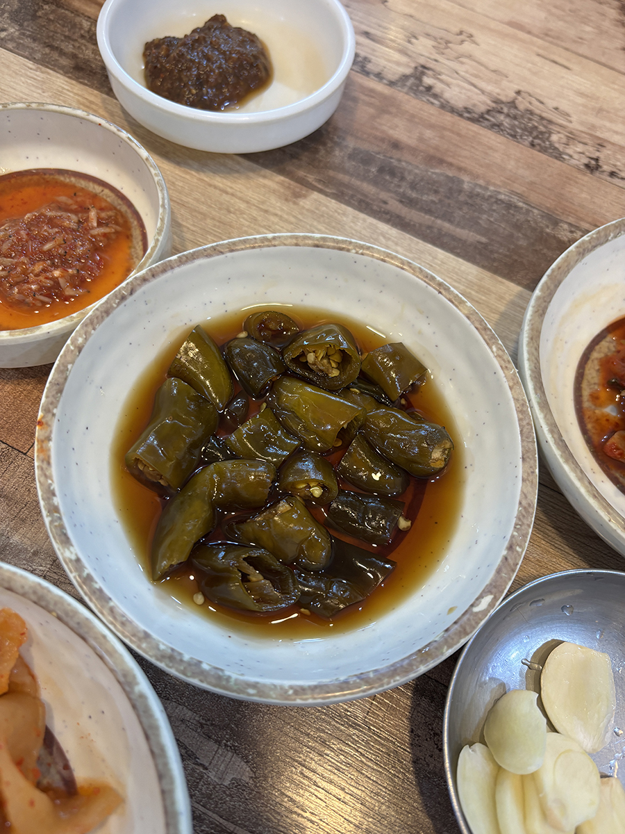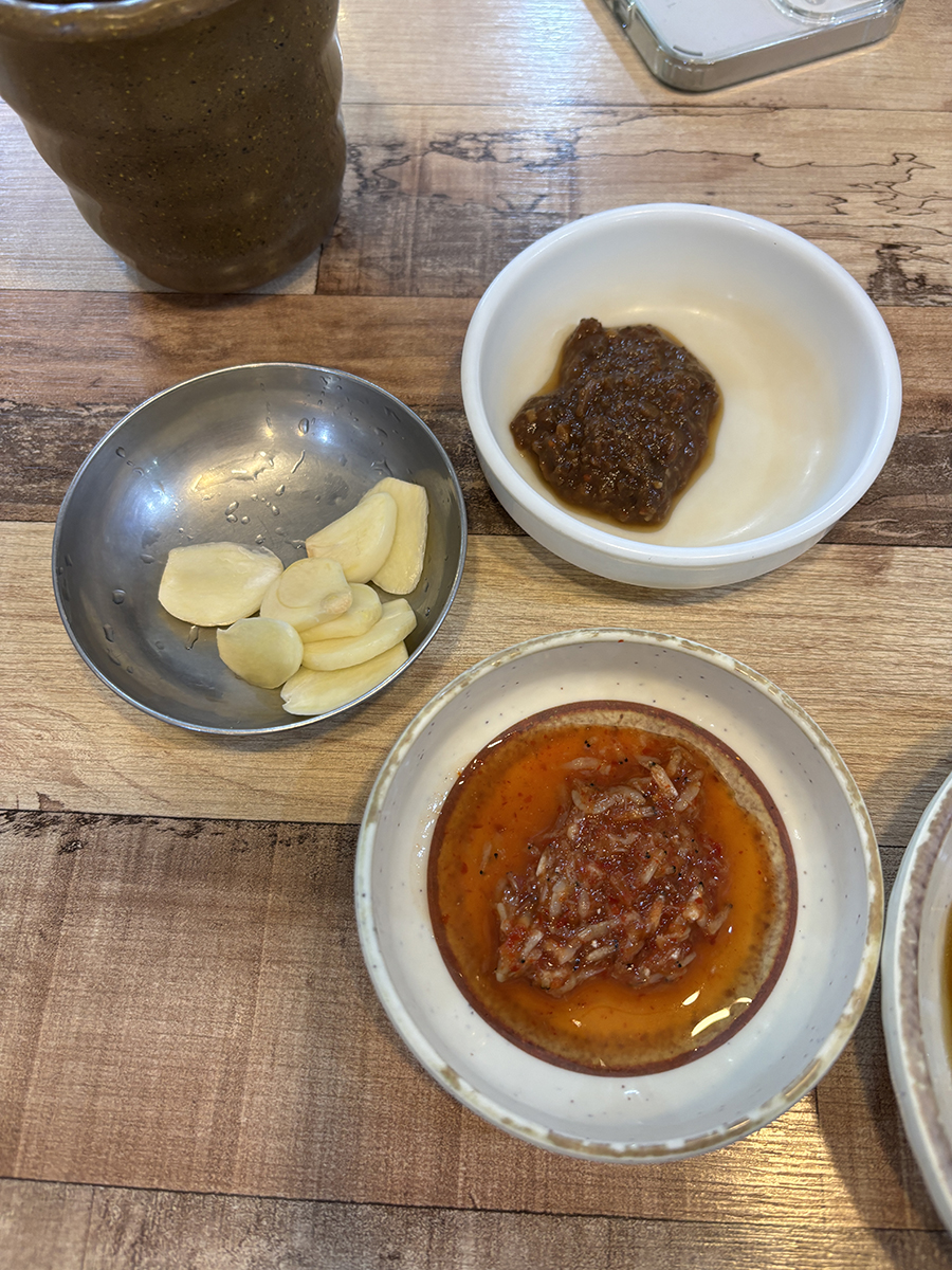 기본 반찬은 편마늘 새우젓 쌈장