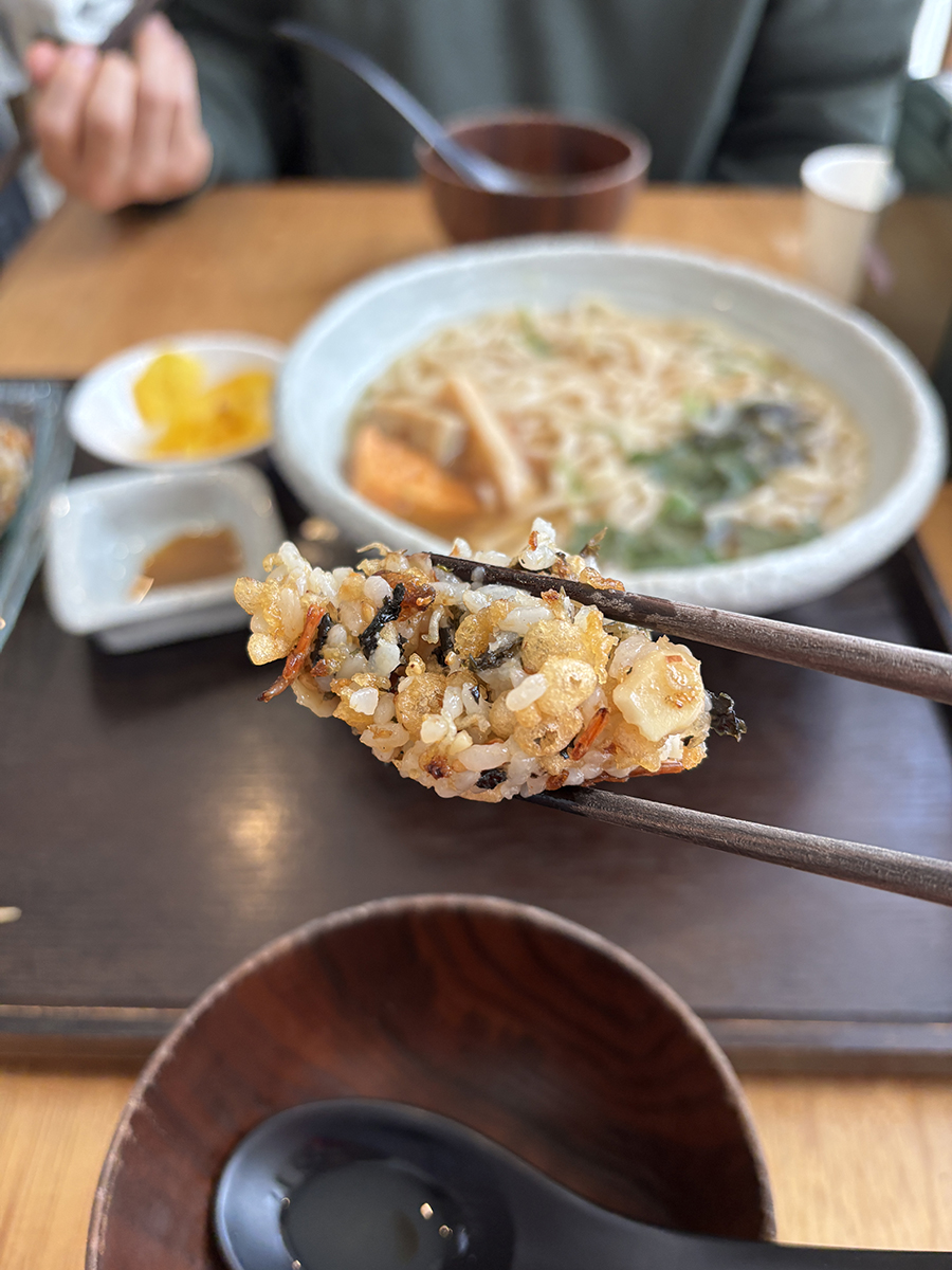 주먹밥에는 새우, 견과류 볶음이 들어있었는데
