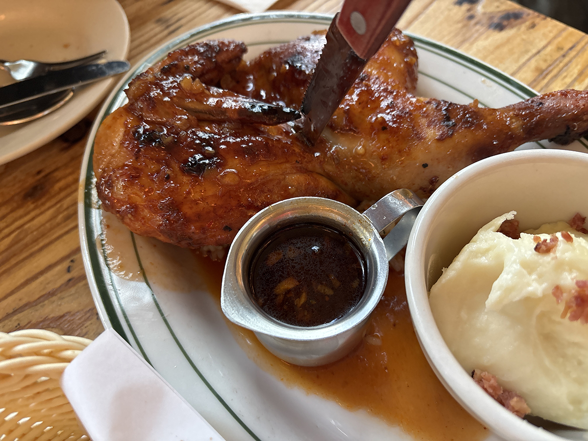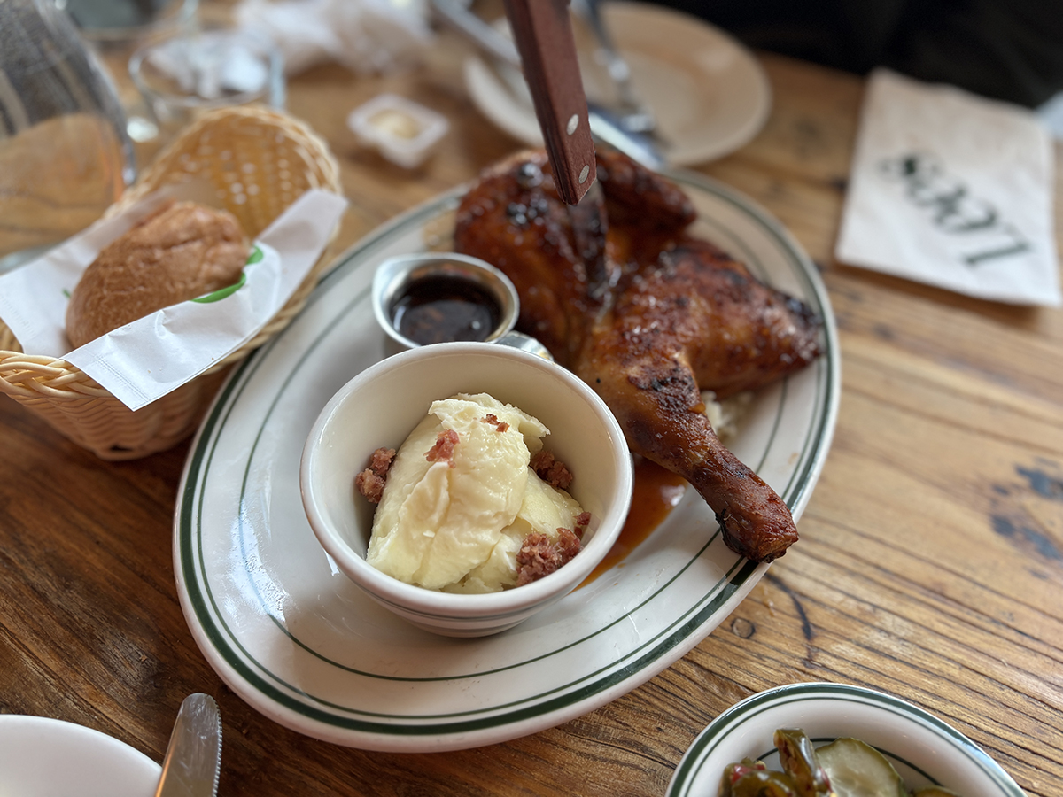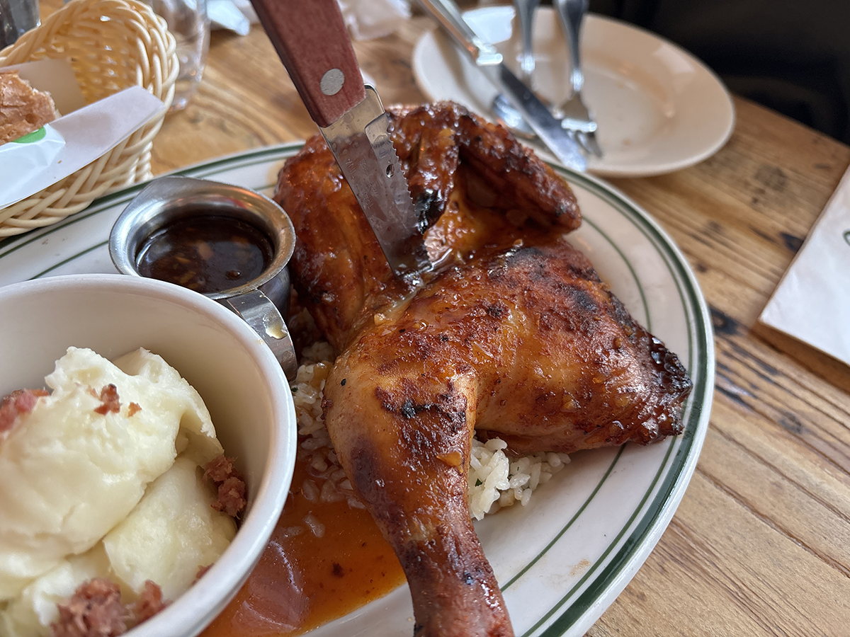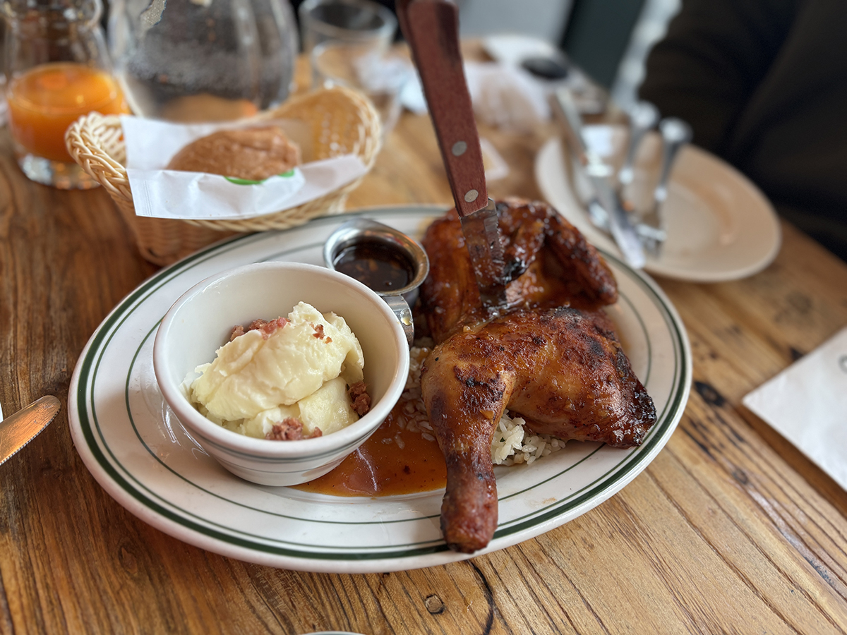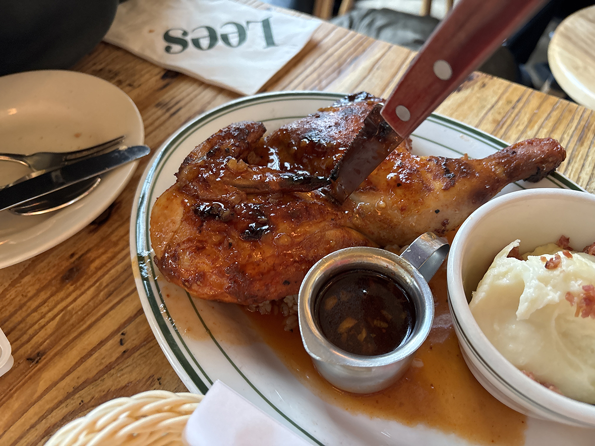 리스 로스트 치킨은 오븐에 촉촉하게 구운 닭 반마리에
