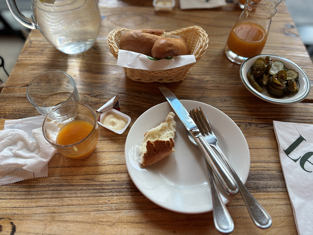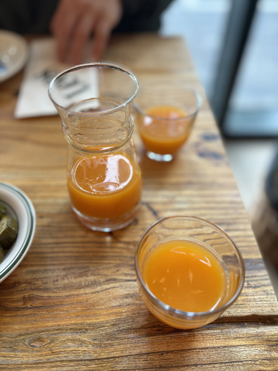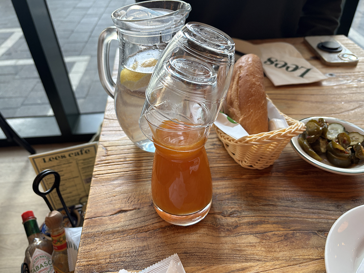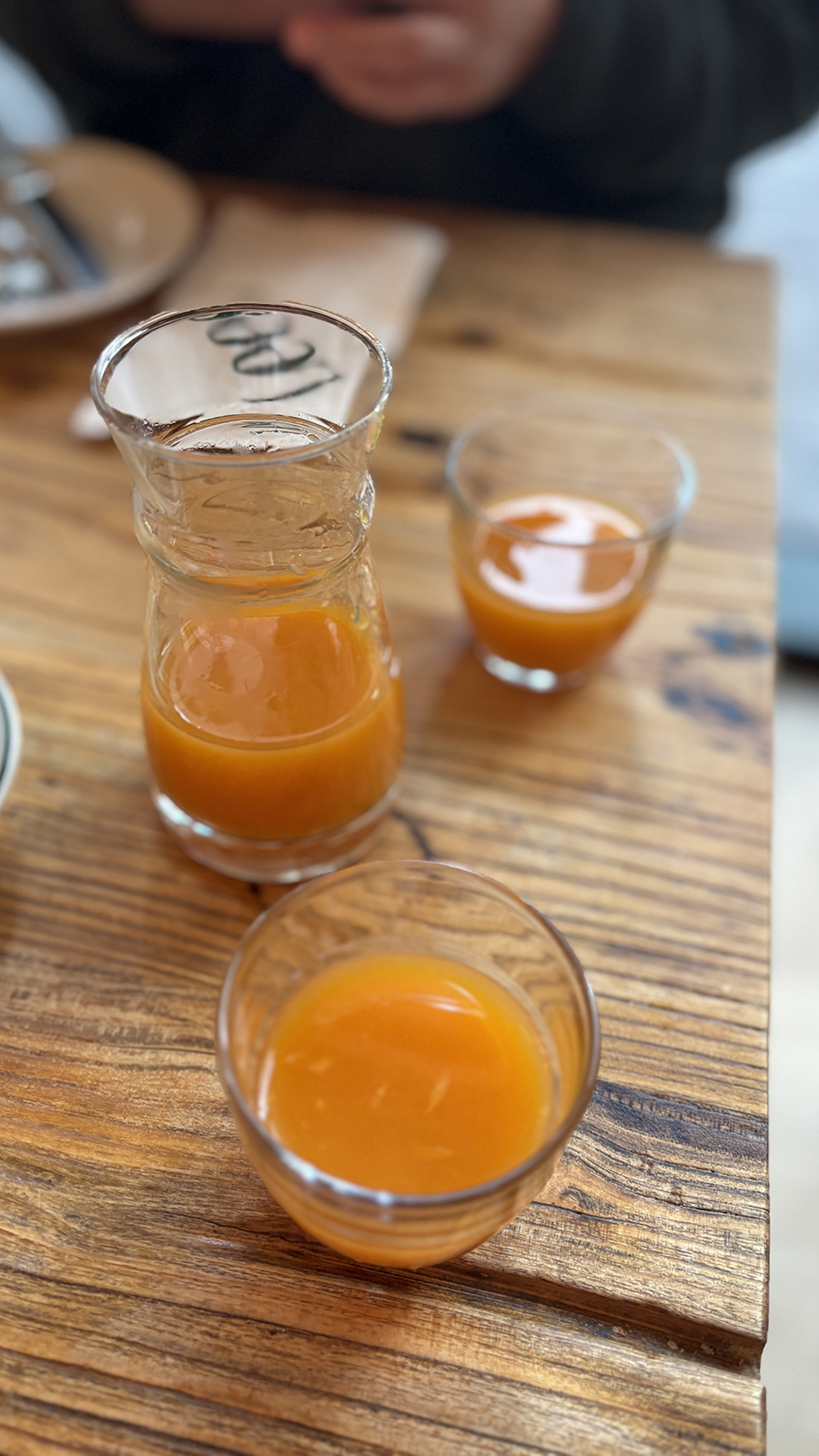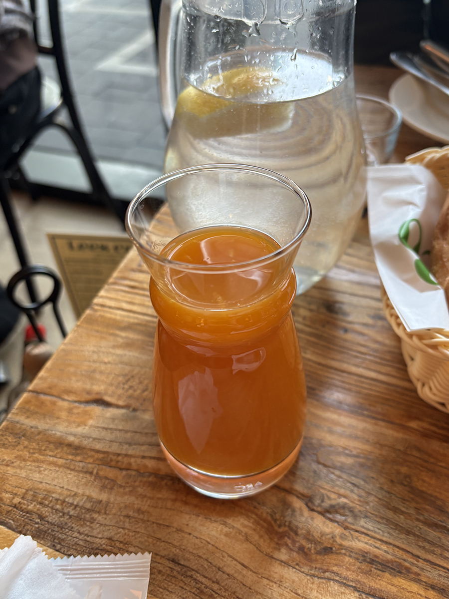 착즙 오렌지주스 나와서 빵이랑 같이 먹으며 음식 기다렸다