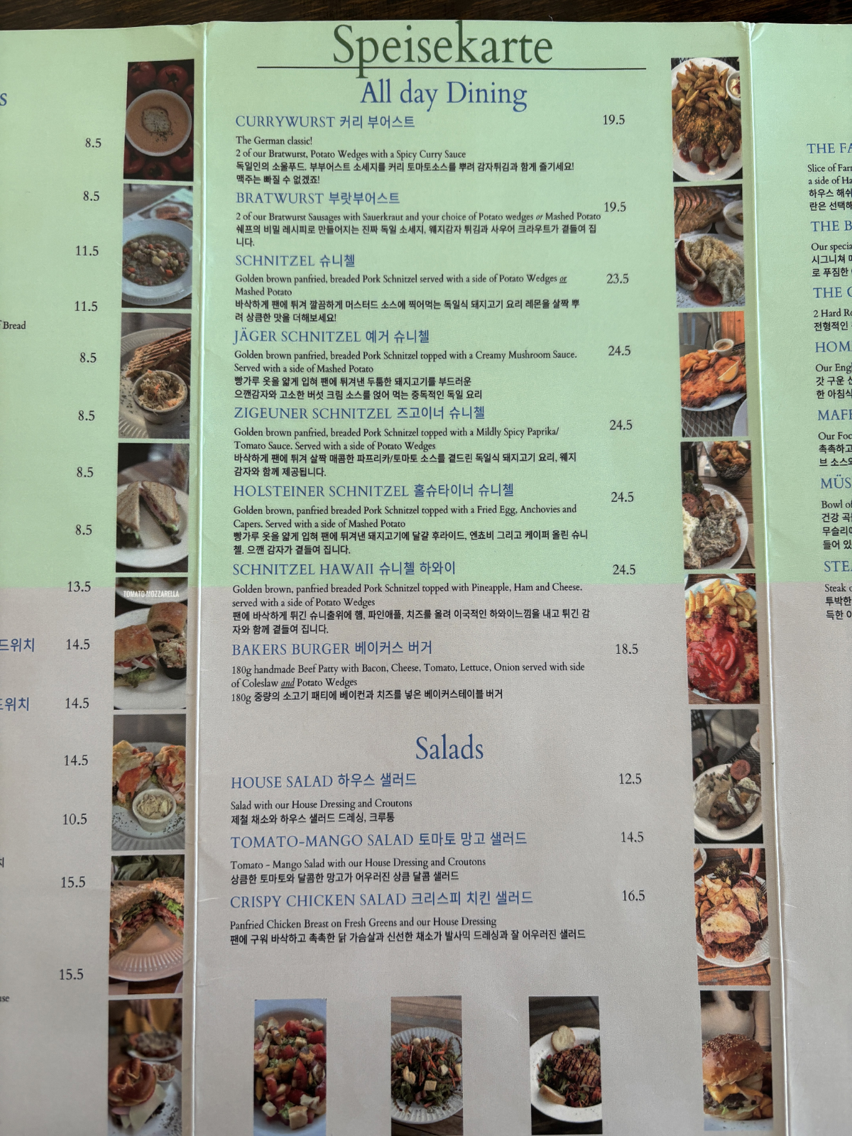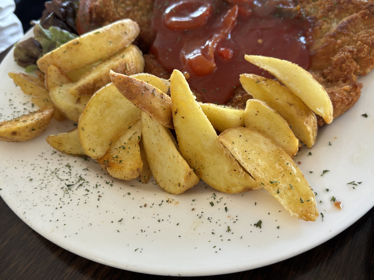 일반 슈니첼, 버섯크림소스가 얹어진 예거 슈니첼, 파프리카-토마토 소스에 웨지감자가 나오는 즈고이너,