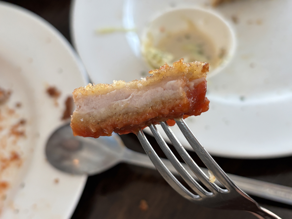 햄, 파인애플, 치즈가 더해진 하와이 중 즈고이너 슈니첼을 주문했다