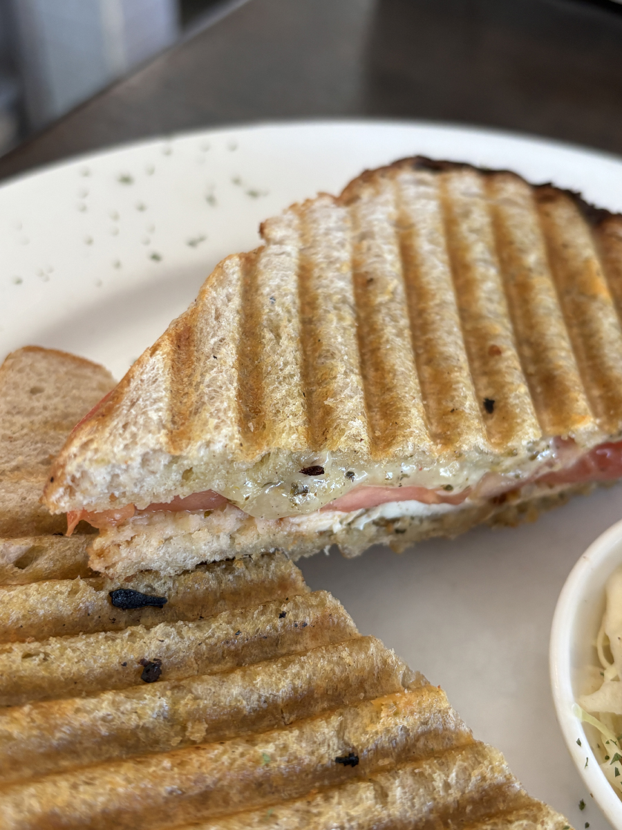 파니니라 구워진 호밀빵은 바삭한데 속이 쫀득해 맛 정..말..좋았습니더....