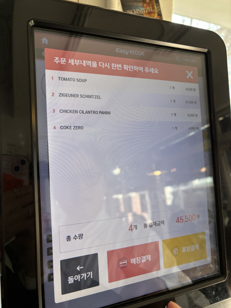 주문과 결제를 하면된다! 빵은 고른 후에 따로 결제하는 것 같았다