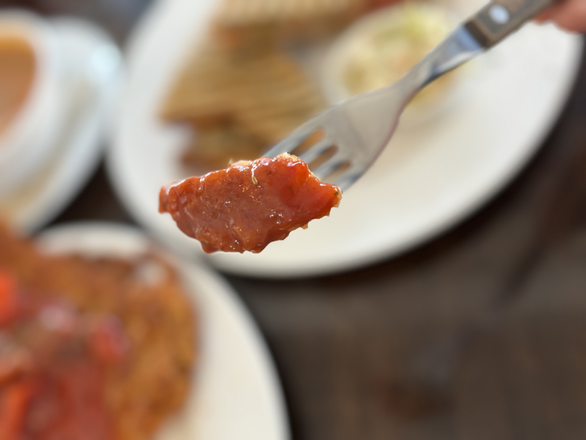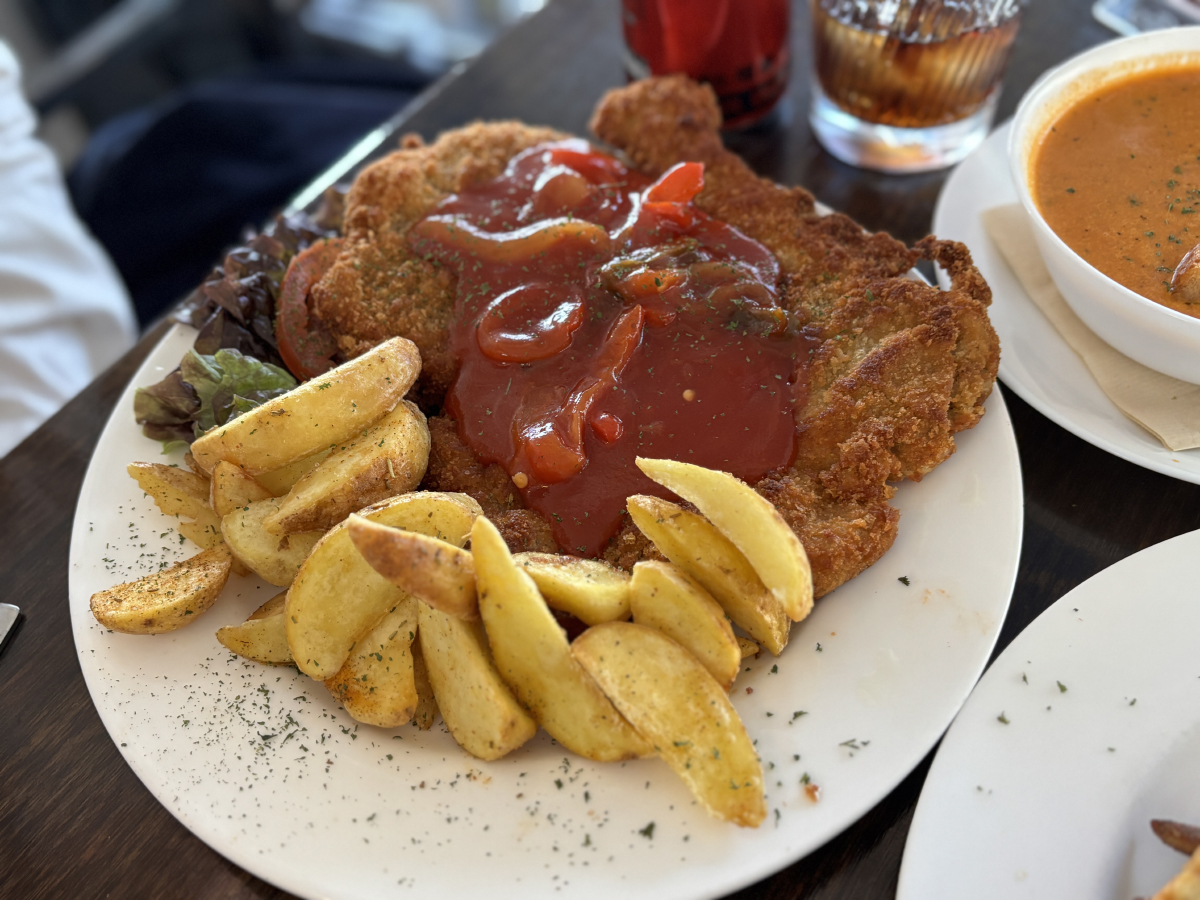 파프리카-토마토소스의 즈고이너 슈니첼을 주문한건데 이거 정~말 잘 골랐음!