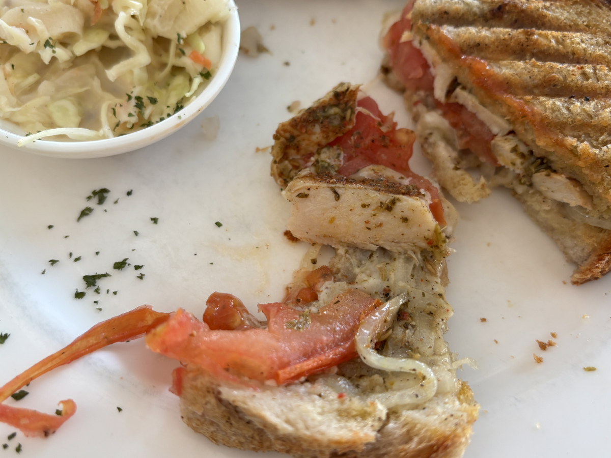 고수소의가 발린 실란트로 치킨 파니니를 골랐다