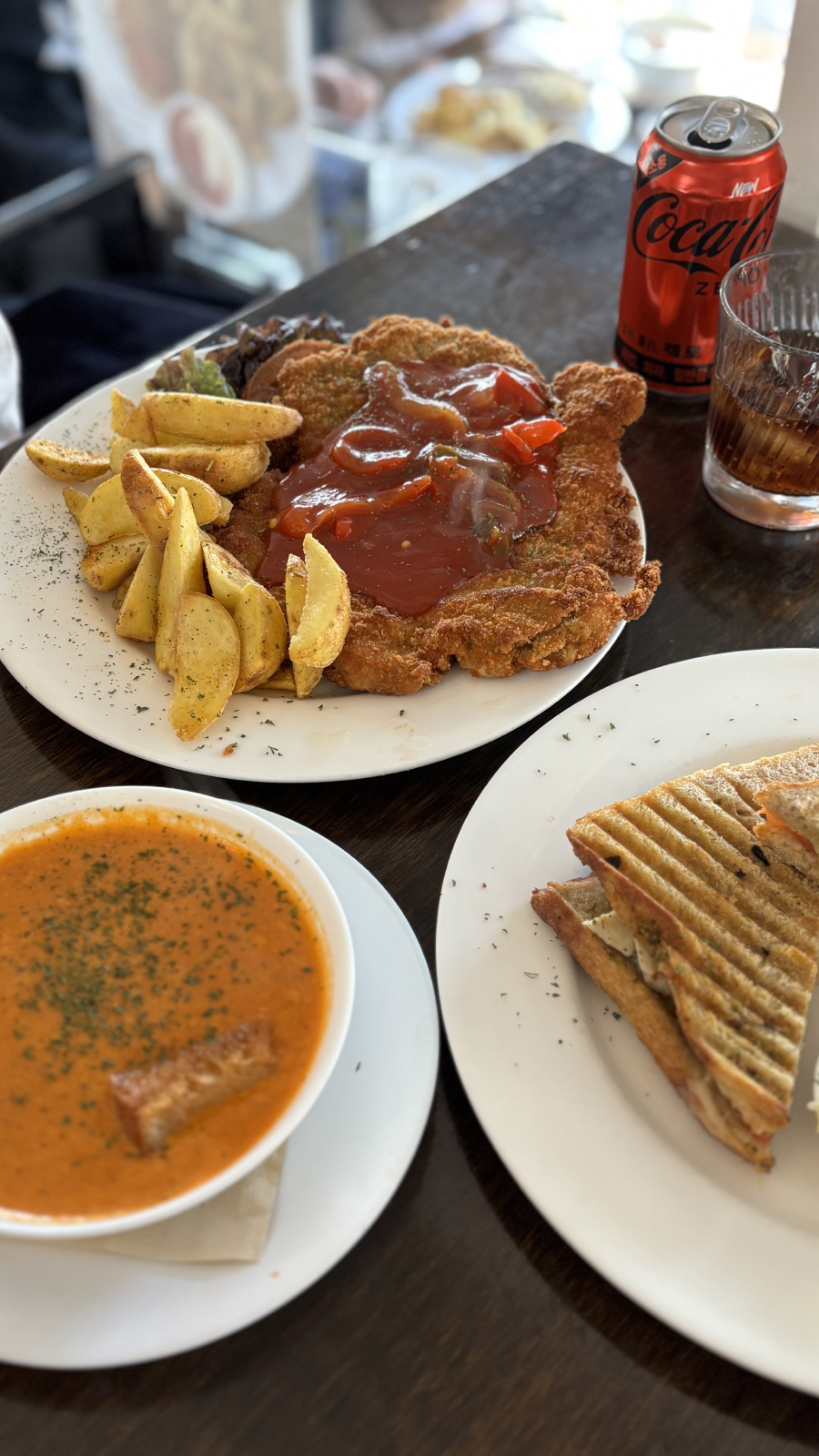 코카콜라제로 토마토수프 즈고이너슈니첼 실란트로치킨파니니