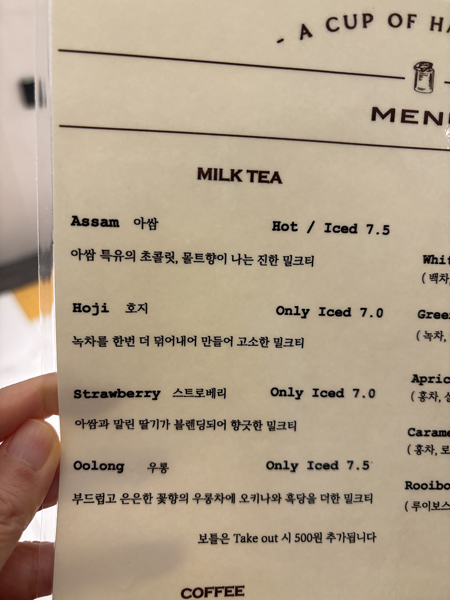 먼저 아쌈밀크티와 스트로베리밀크티가 나옴
