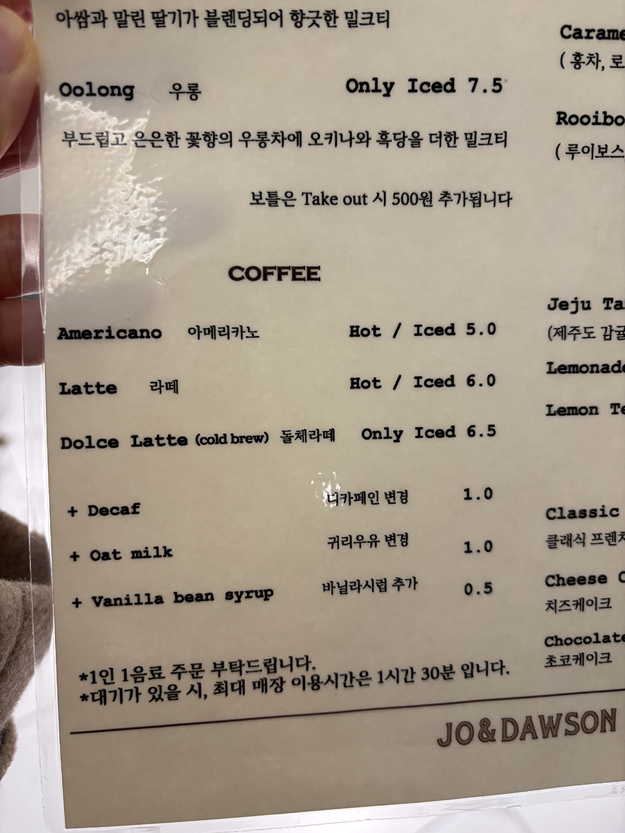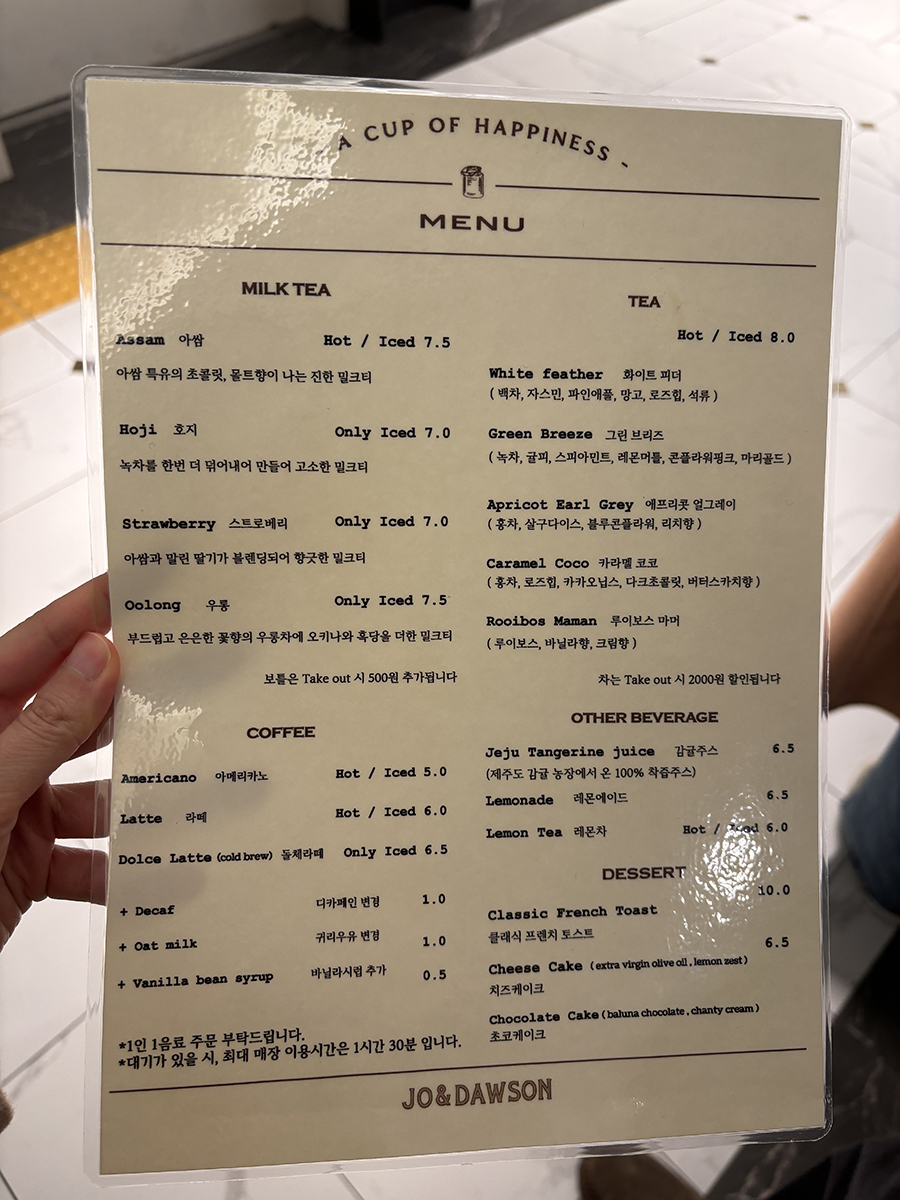 오픈 준비가 거의 끝나면 인원 수 체크와 함께 메뉴판을 먼저 주고