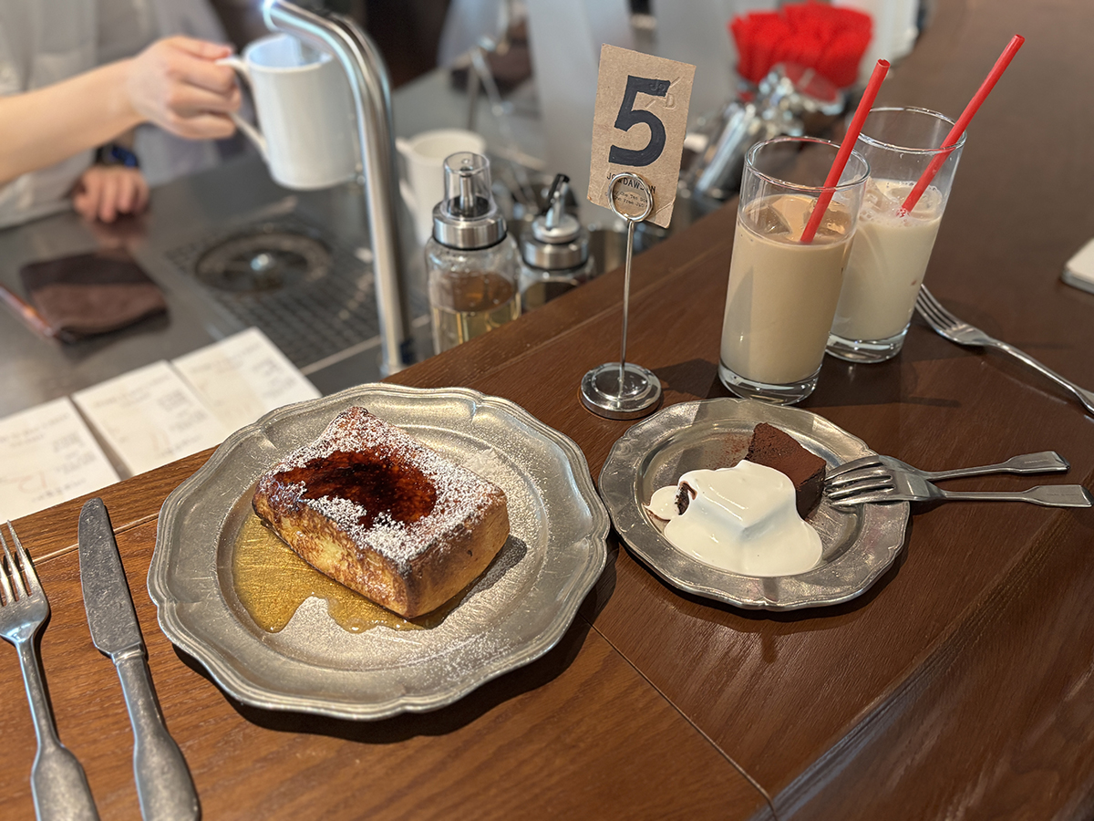 퐁실한 프렌치 토스트에는 시럽이 깔려 있고