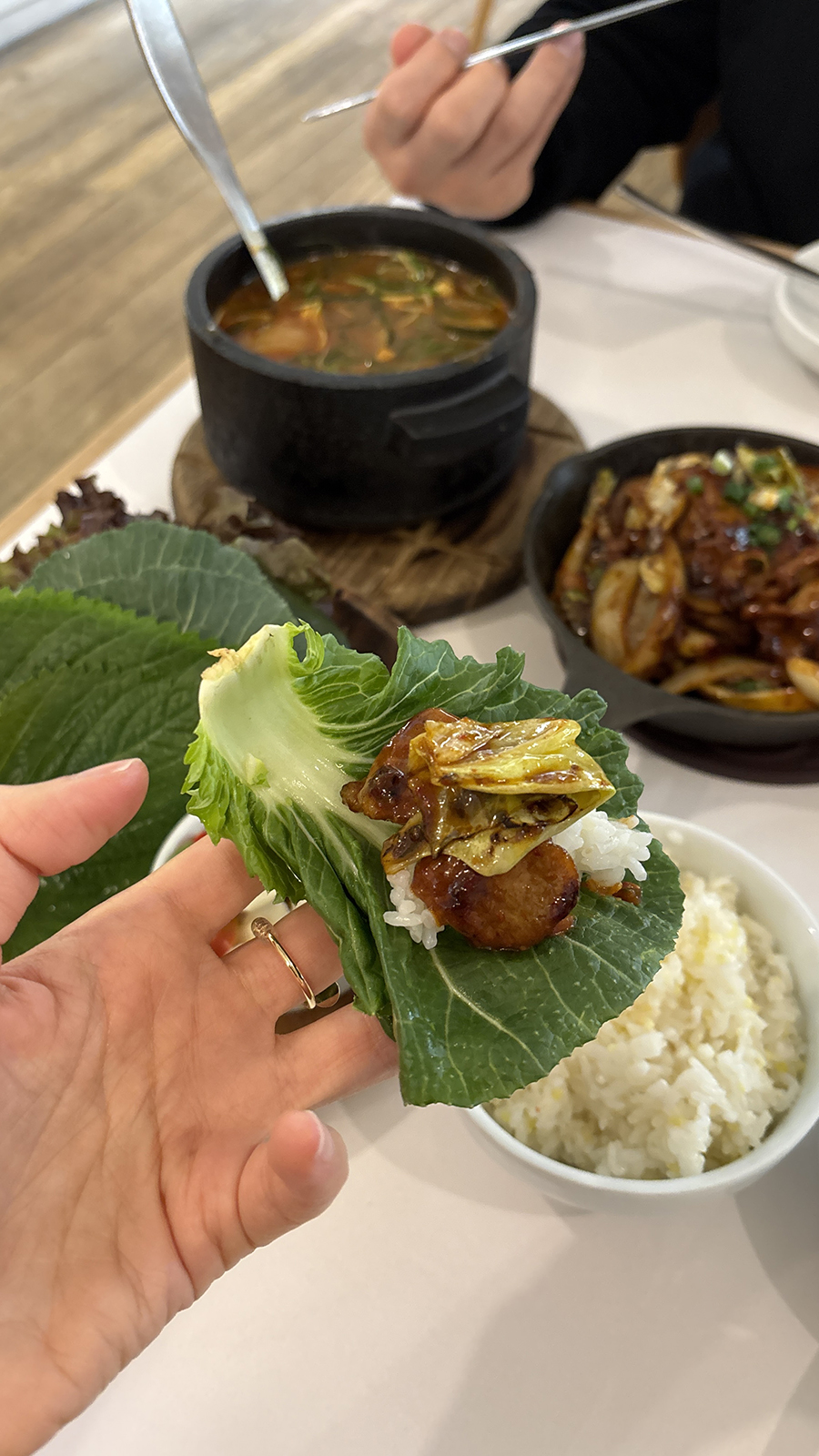 쌈장은 안 나올 줄 알고 그릇 가져갈 때 잡아 올렸는데 또 있어서 두개가 됨 ㅋㅋㅋ