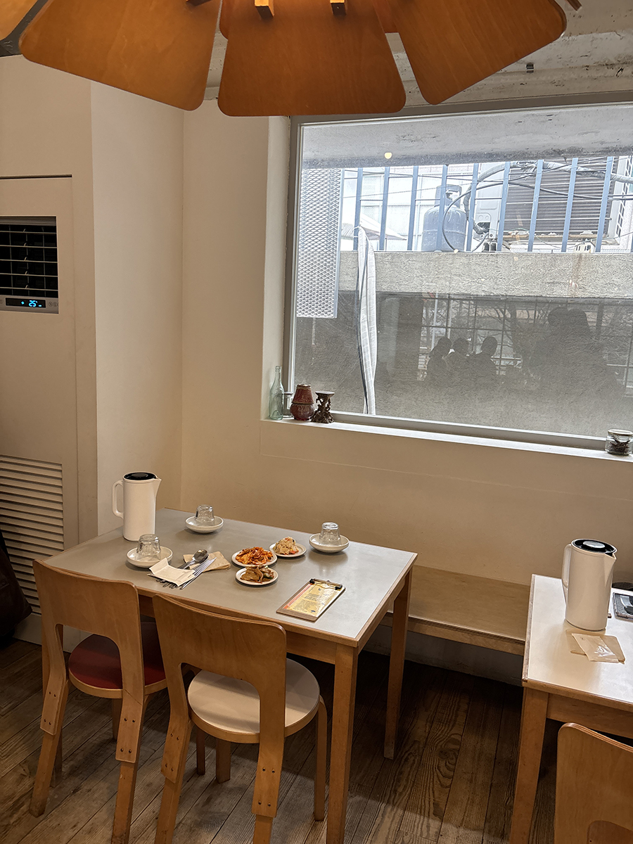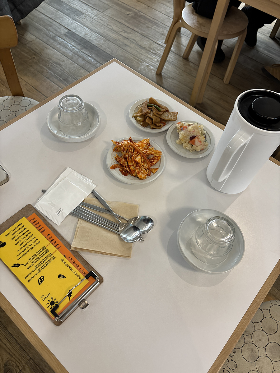반찬 세가지가 함께~ 메뉴판도 놓여 있어 주문 전 다시 확인!