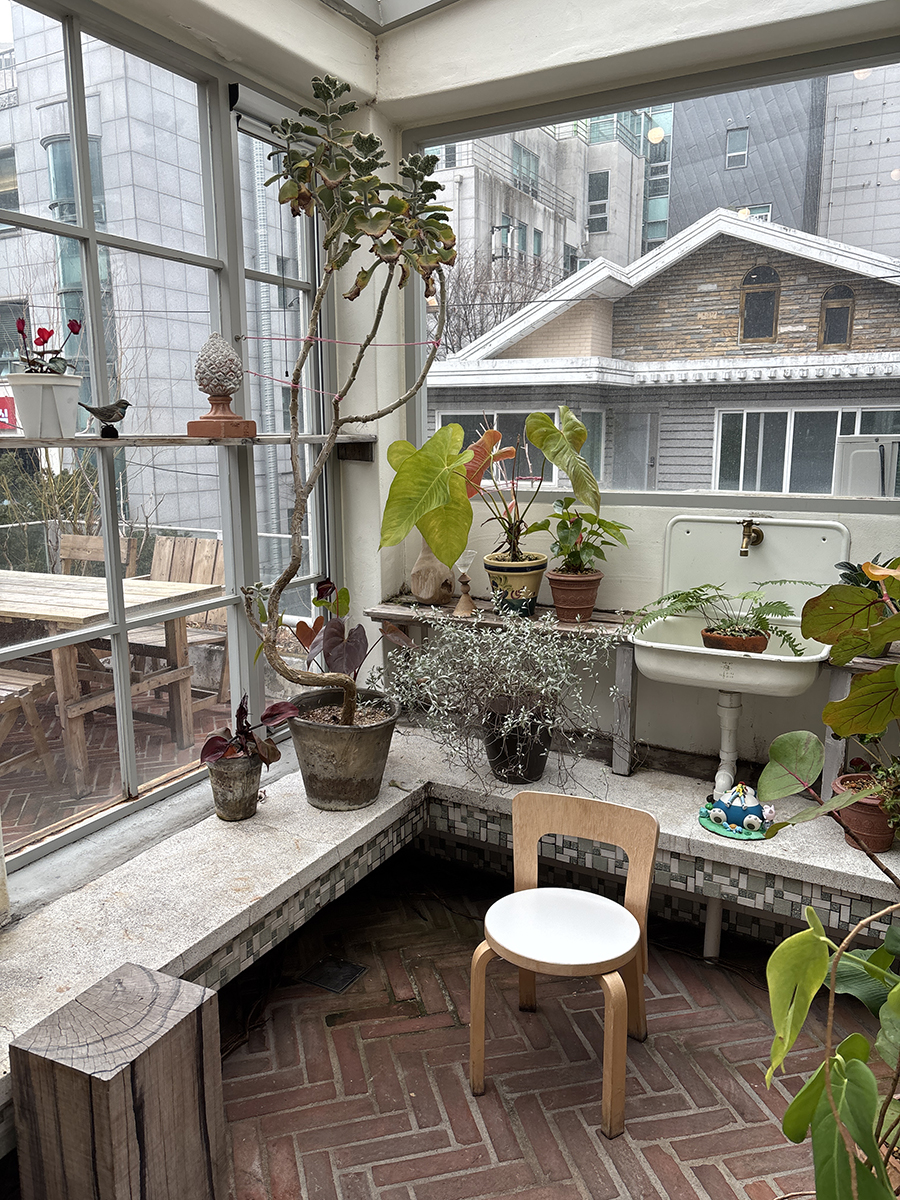 입구쪽에 옷걸을 수 있느 곳이 있고 그 옆은 작은 가든ㅎㅎ