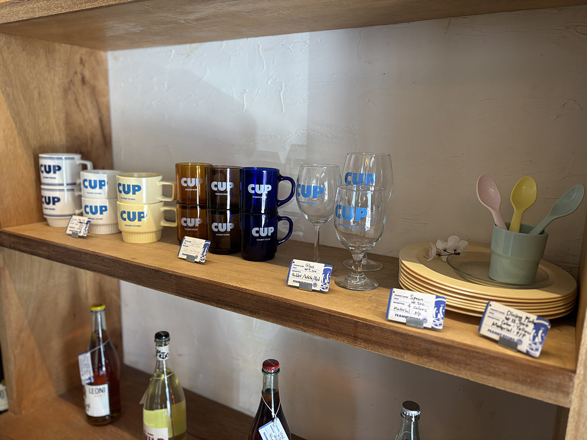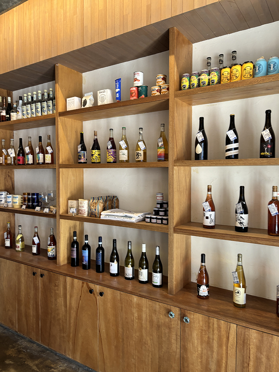 한쪽에 와인과 카페 상품이 놓여있음